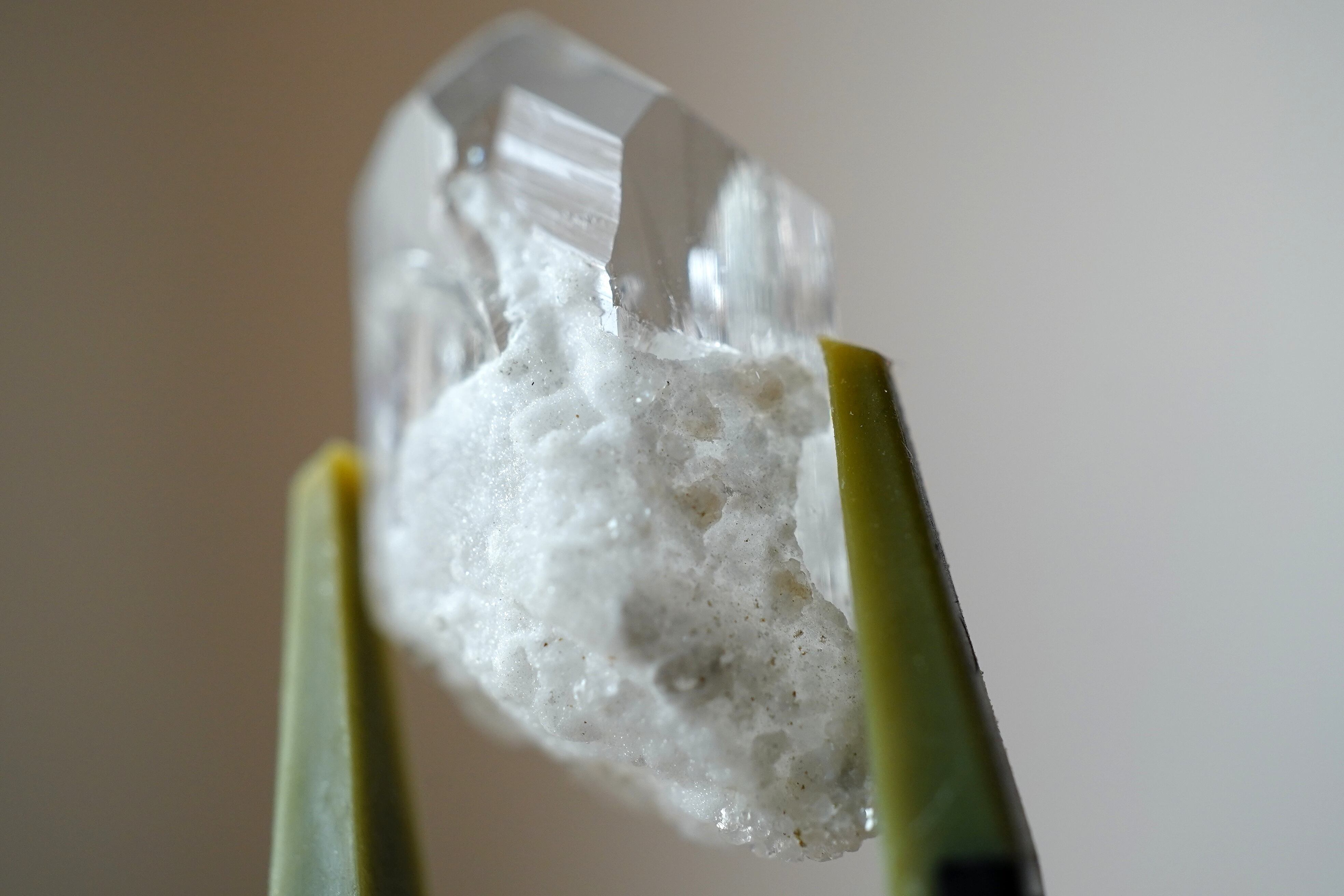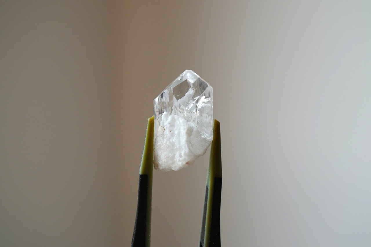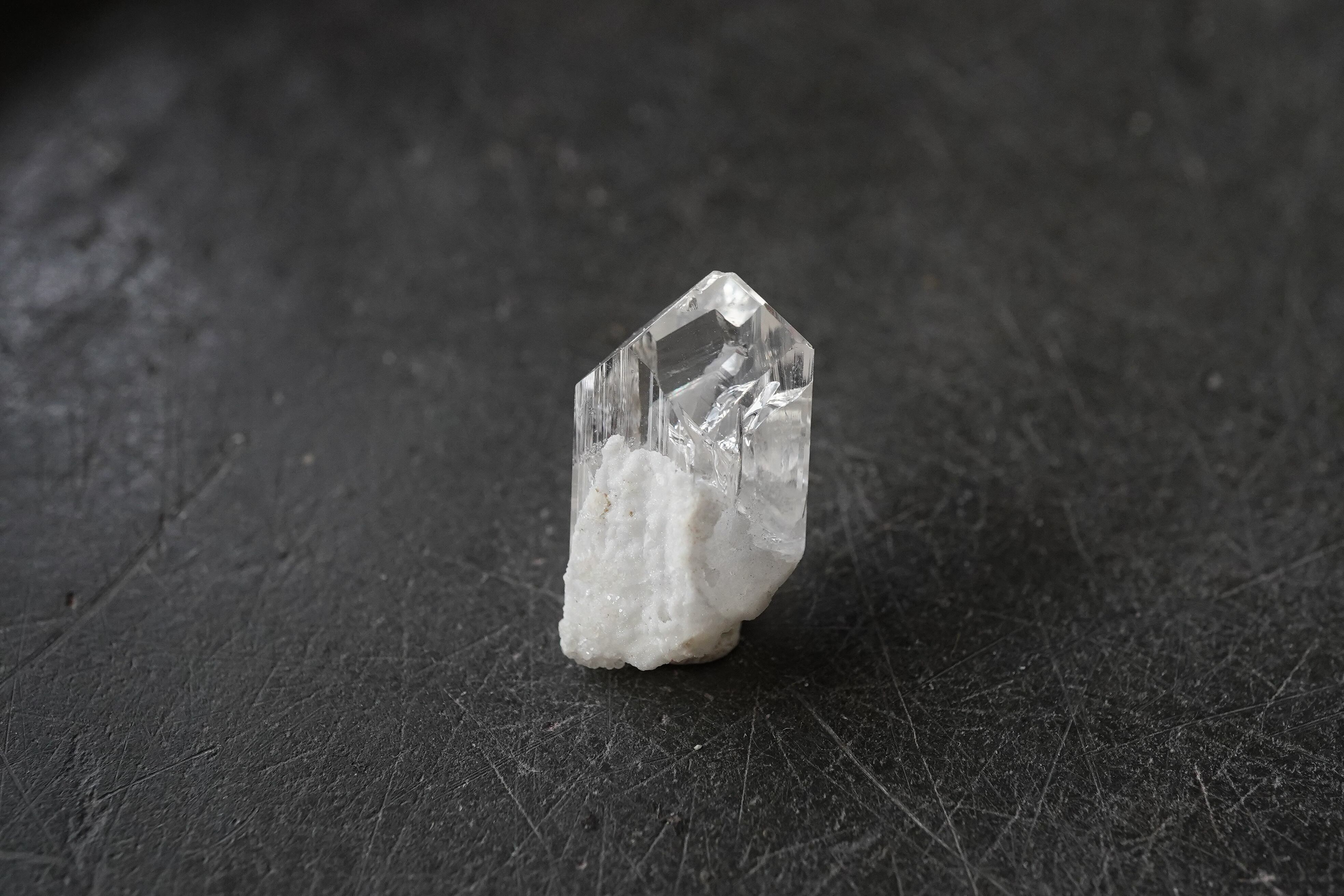 透明度の高いクリアなダンビュライトの表面にとっても細かいドゥルージー状の水晶がくっついているかわいい個体です。
