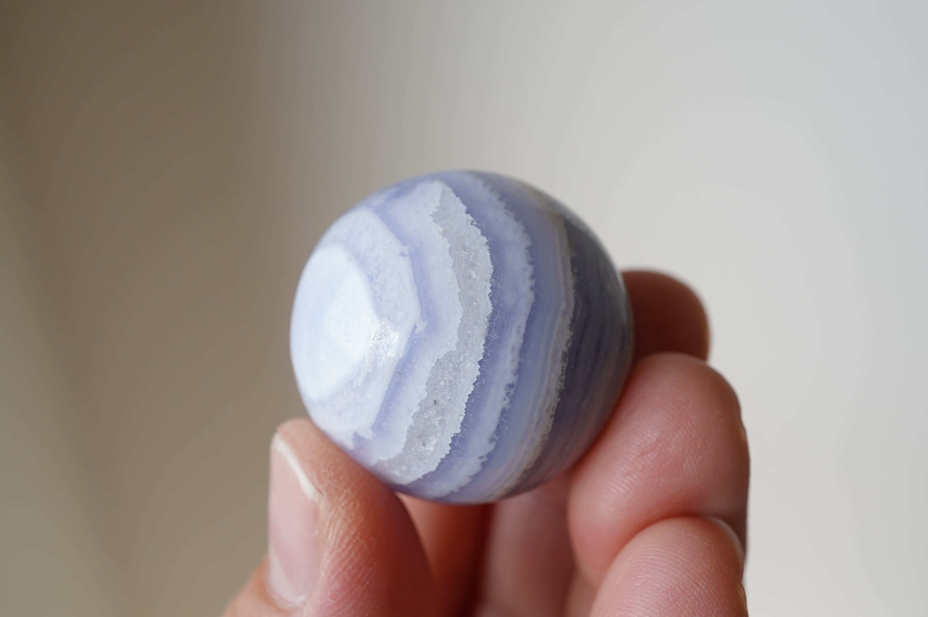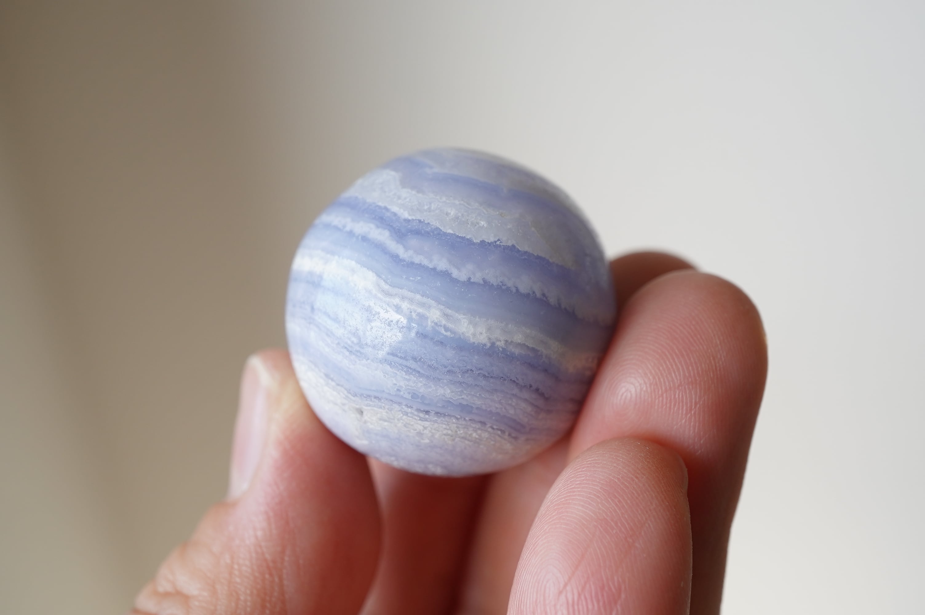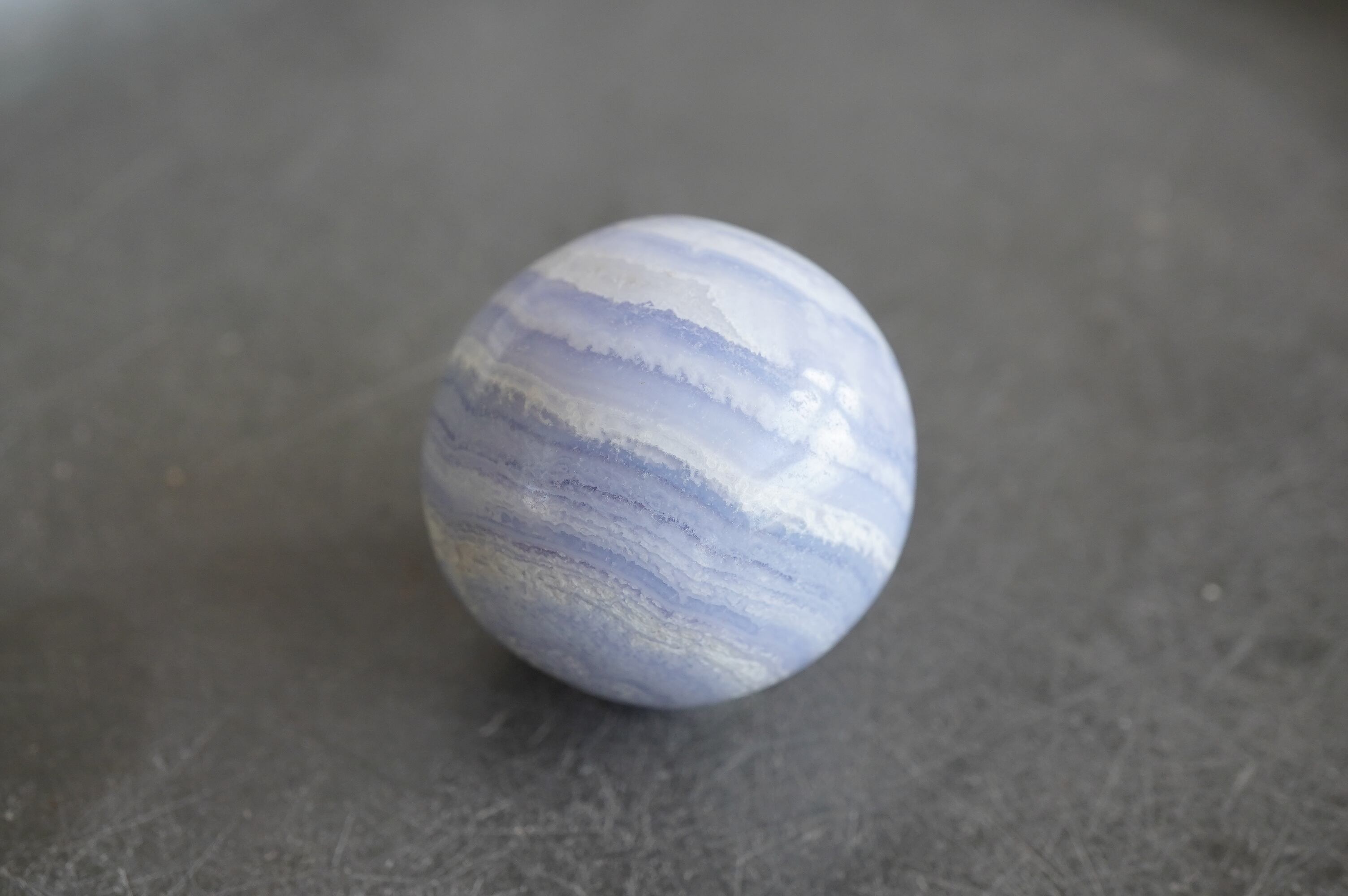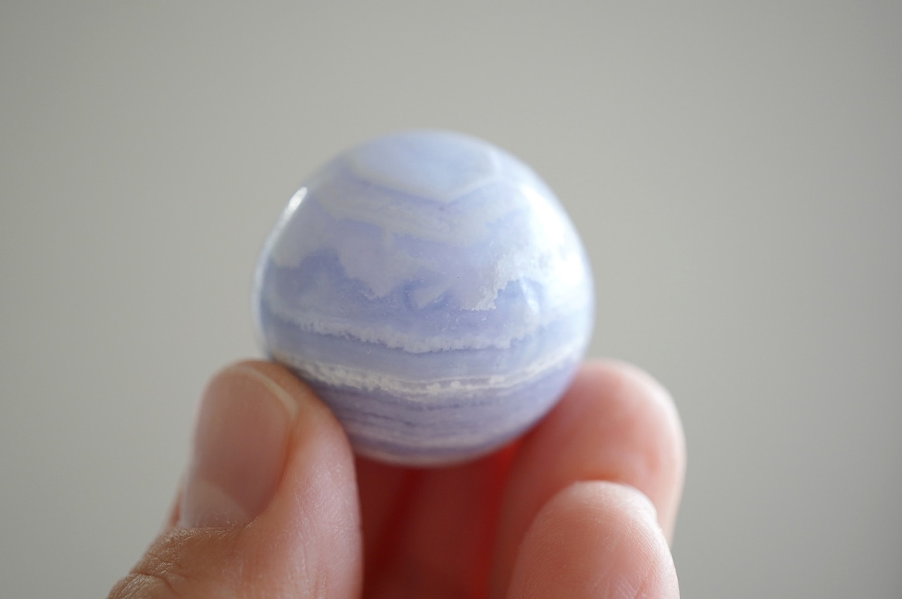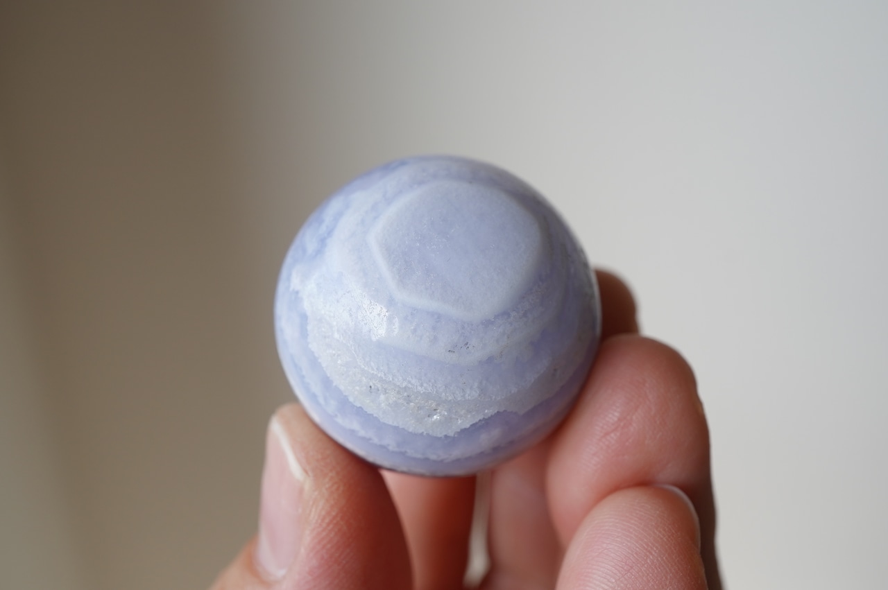 ハンドポリッシュで磨かれたミニスフィア。縞模様とこの色がなんとも可愛い!