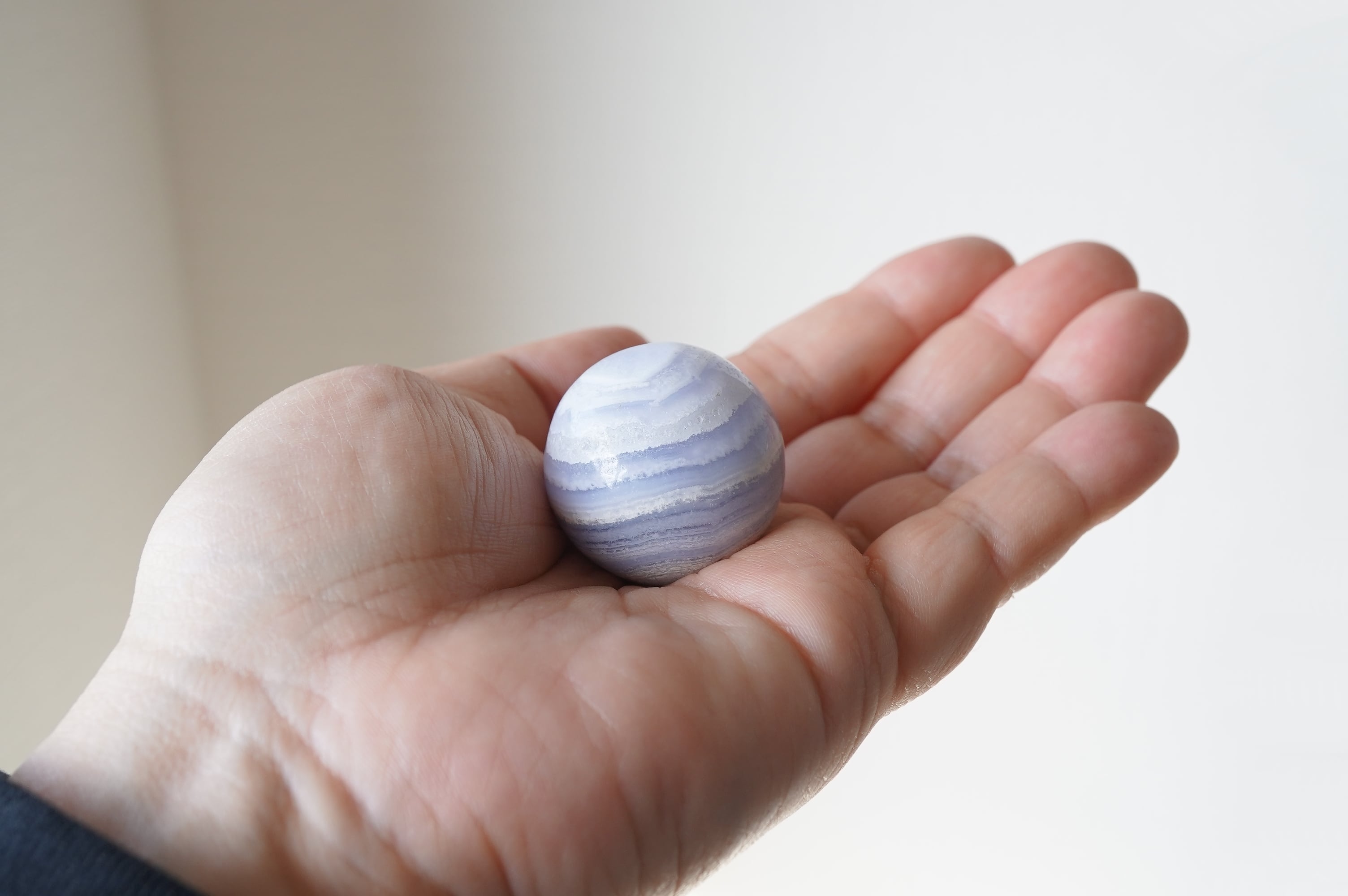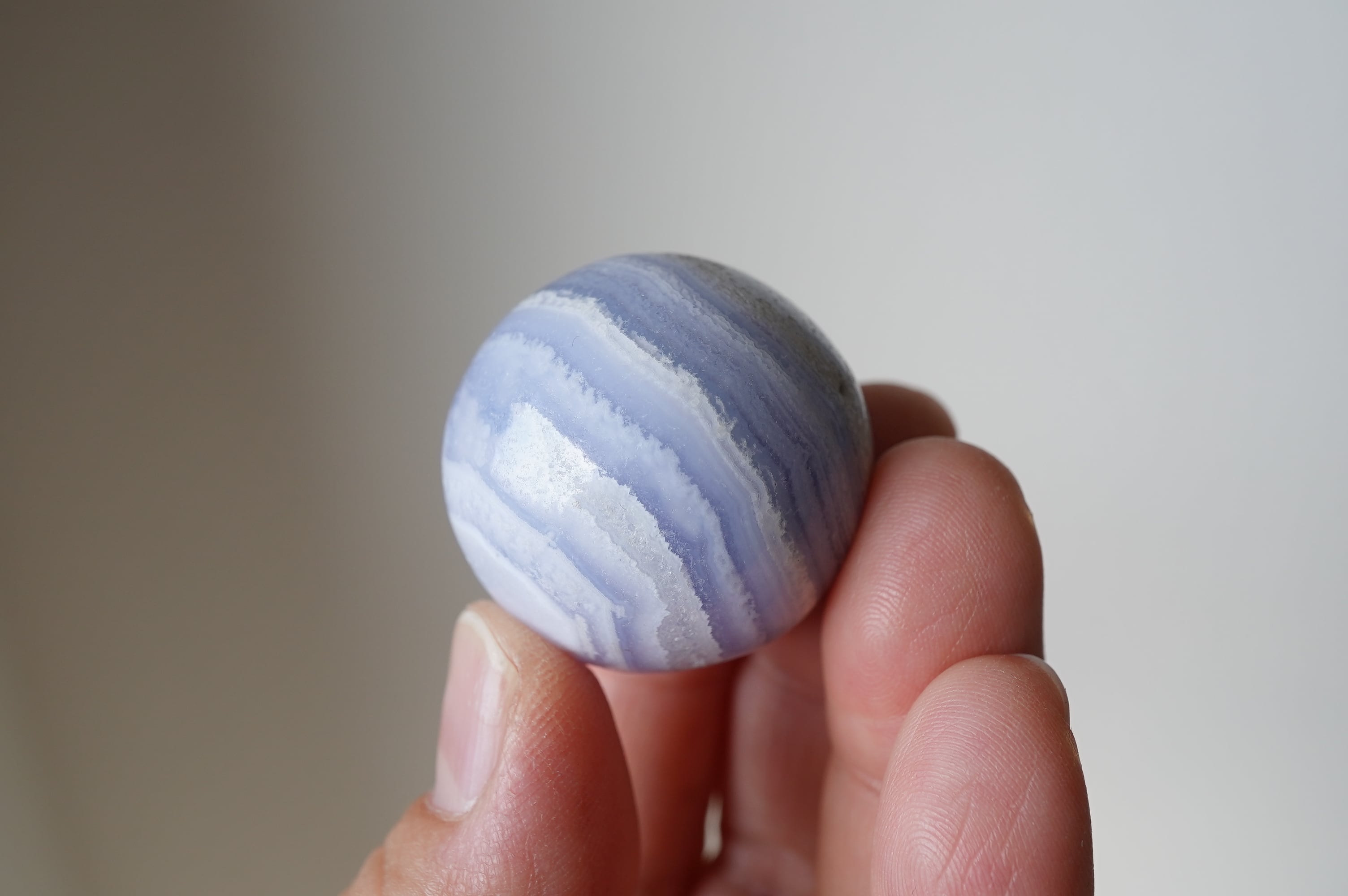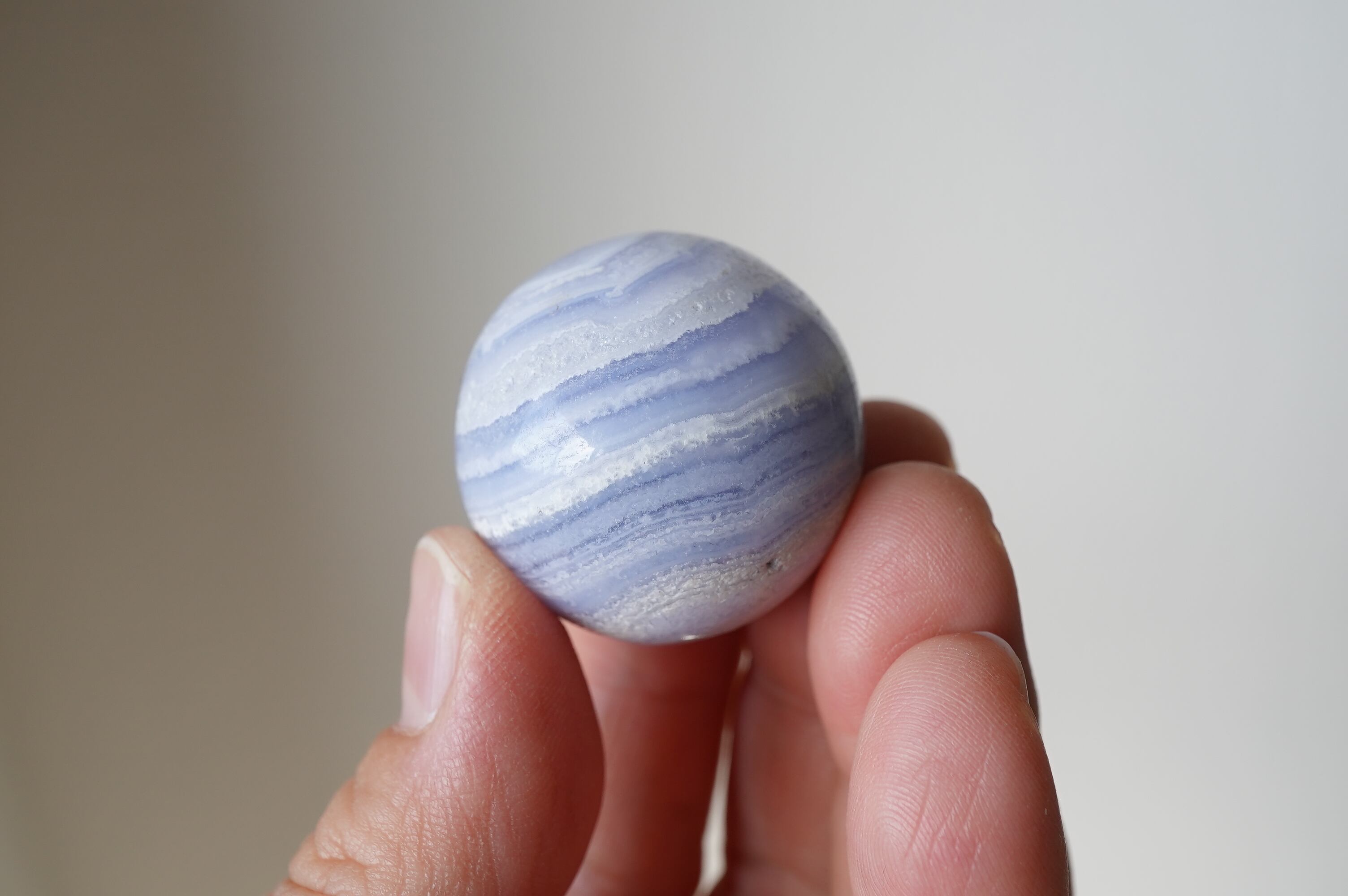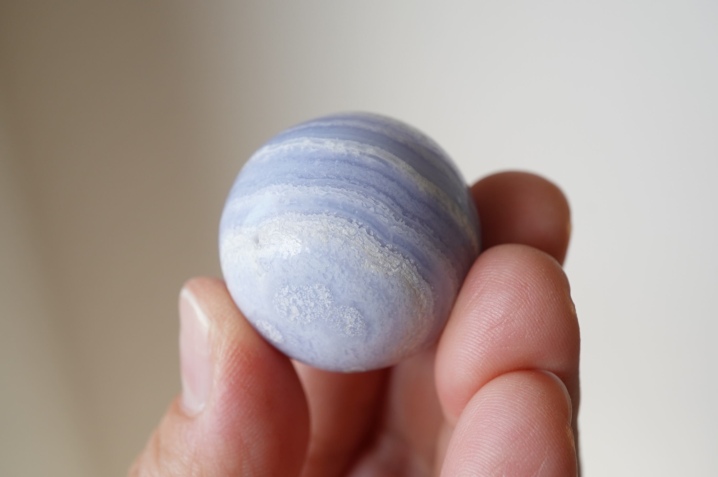ハンドポリッシュで磨かれたミニスフィア。縞模様とこの色がなんとも可愛い!