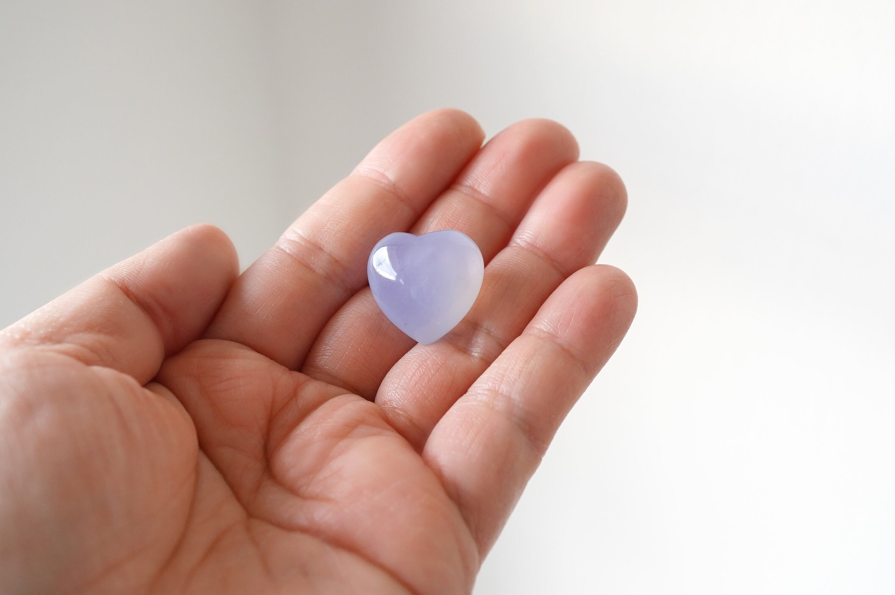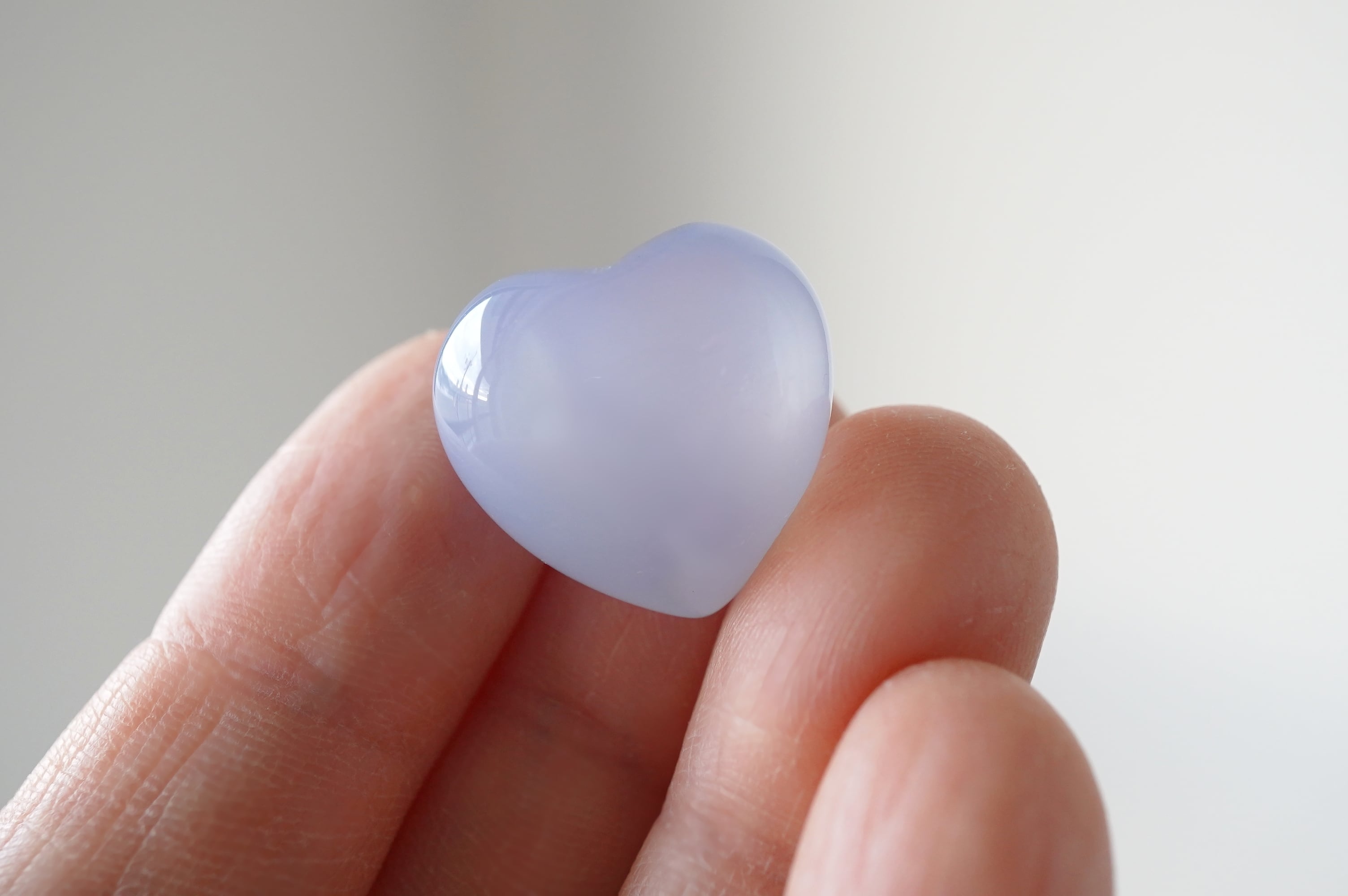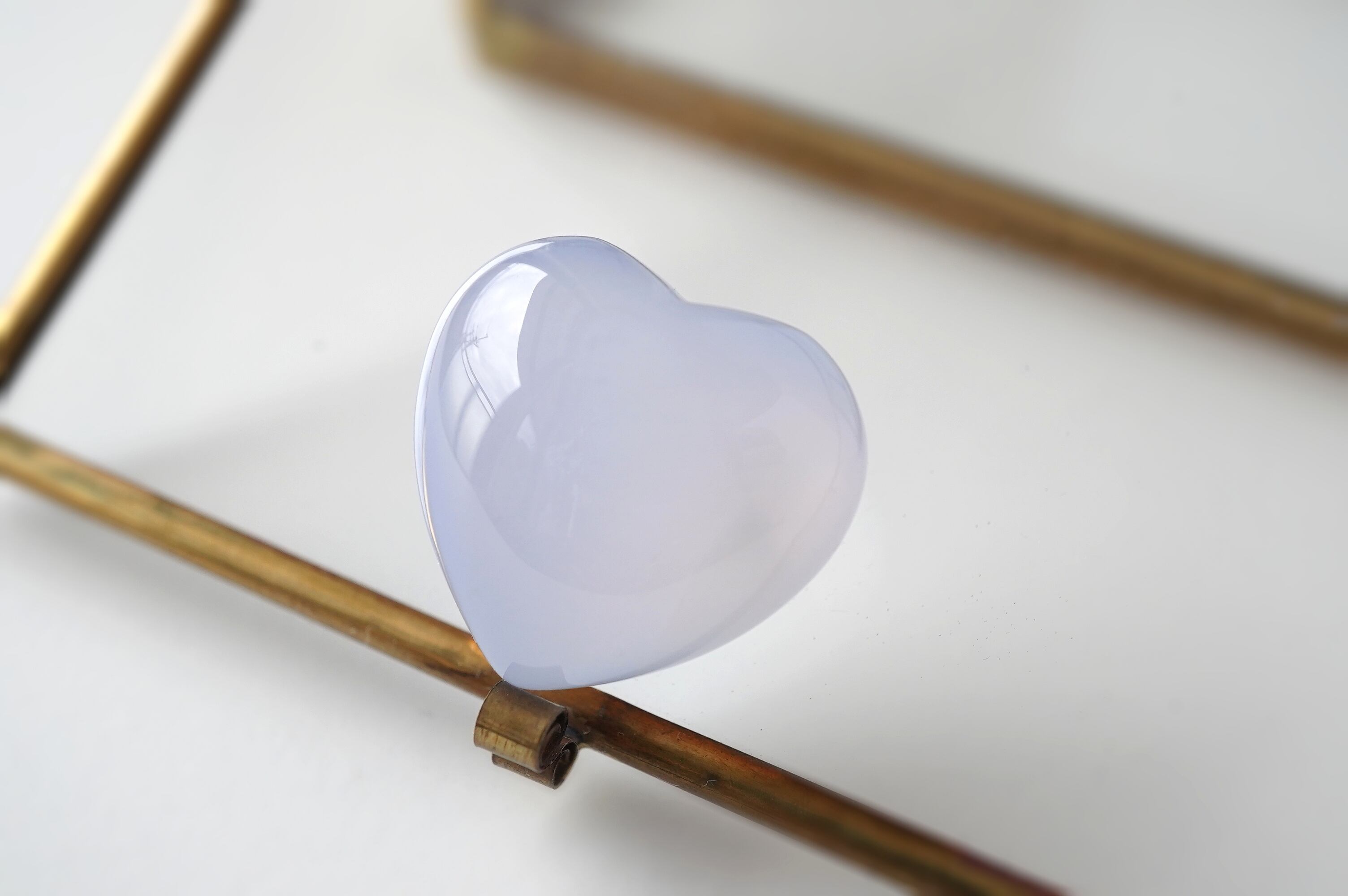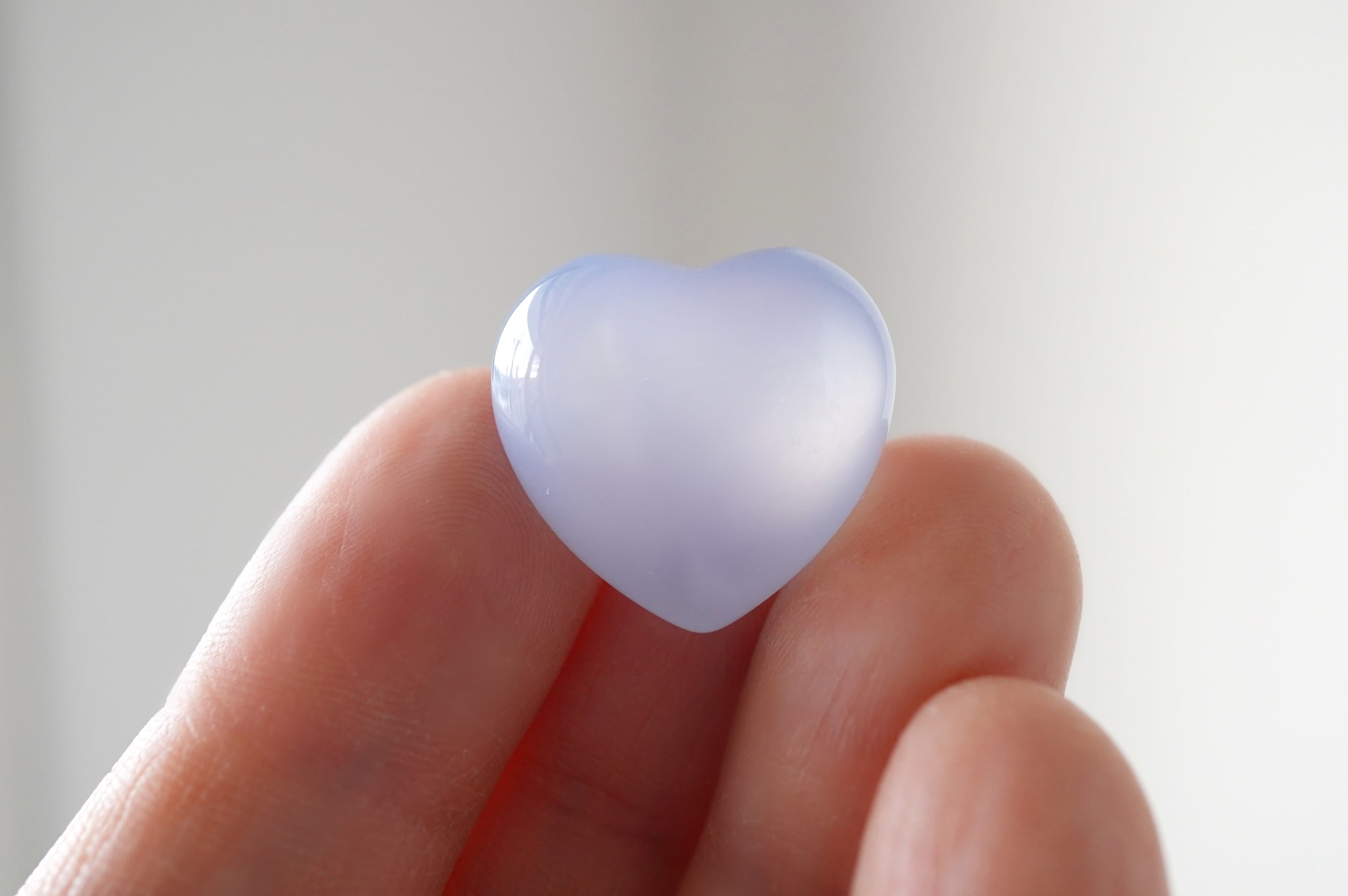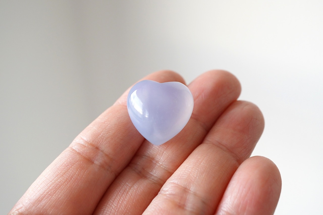 ぷっくりした可愛いブルーカルセドニーのハートです。透明感がありながらも色の発色がよく、クォリティーが高いです。