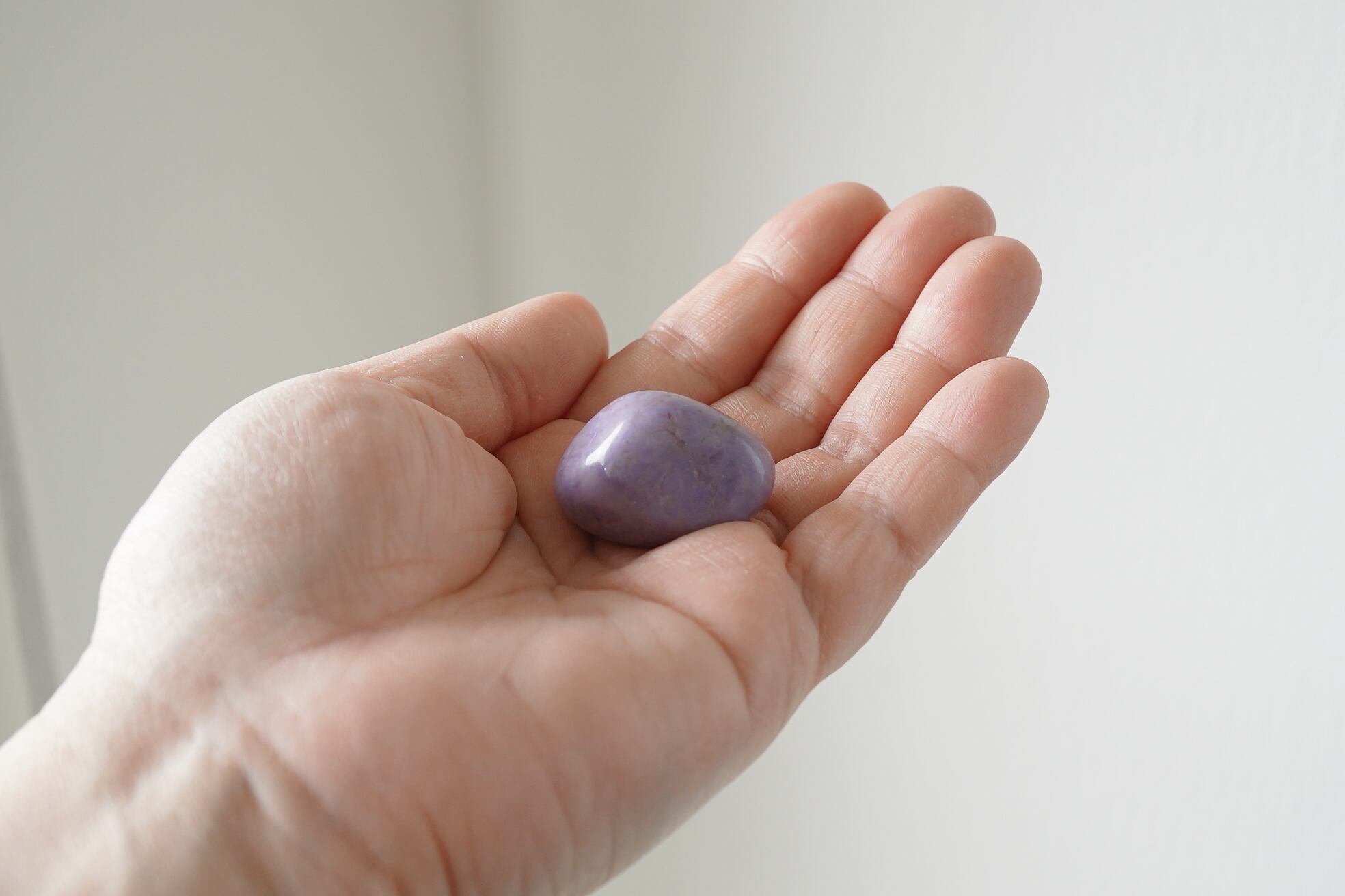 タンブルサイズのコロンとしたトルコ産のラベンダージェイドです。ぎゅっとつまった感じのジェダイトで、日本のラベンダー翡翠と全然違う雰囲気です。クォリティーがさまざまありますが、こちらは比較的お手頃なものとなっております。