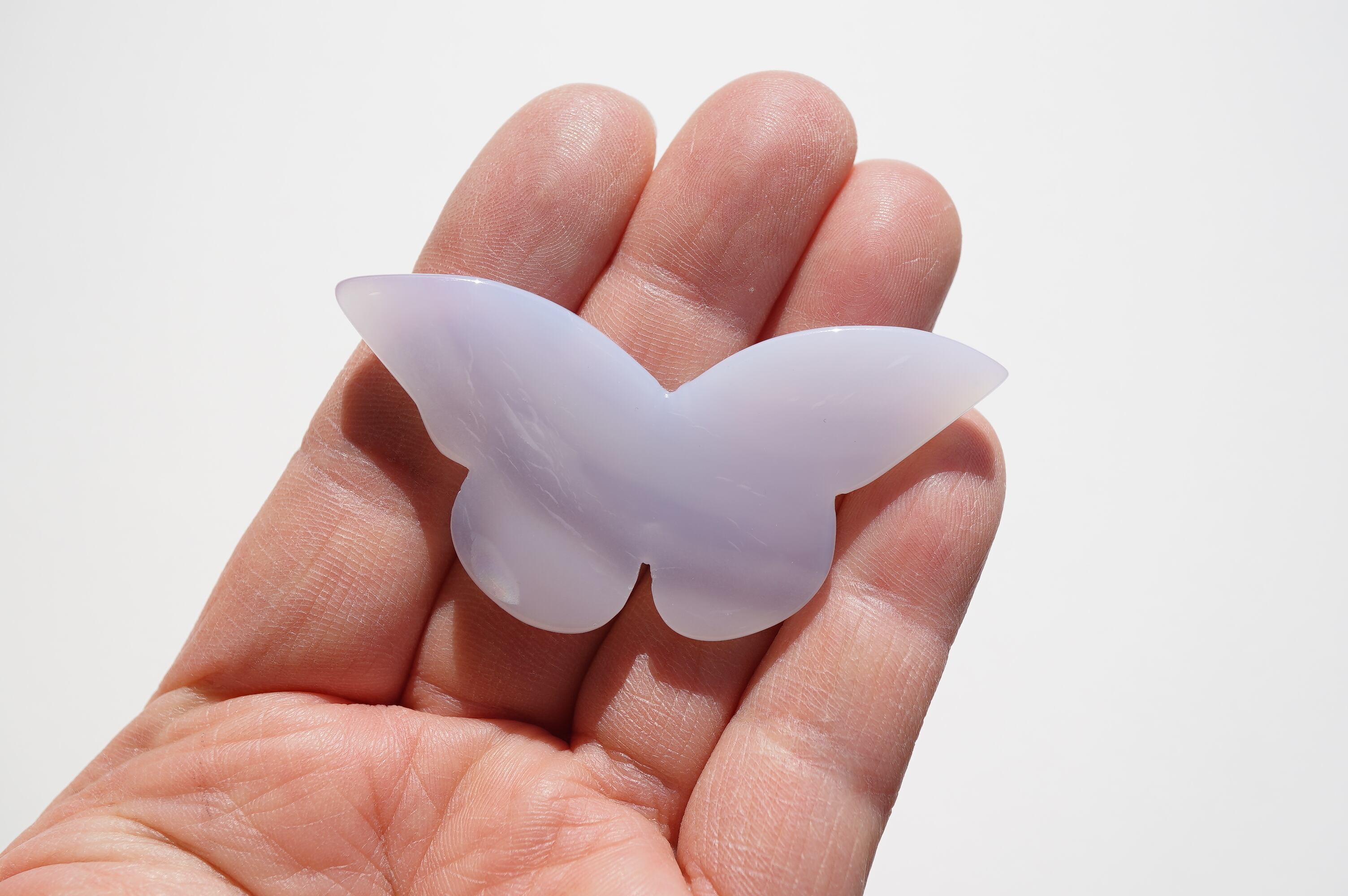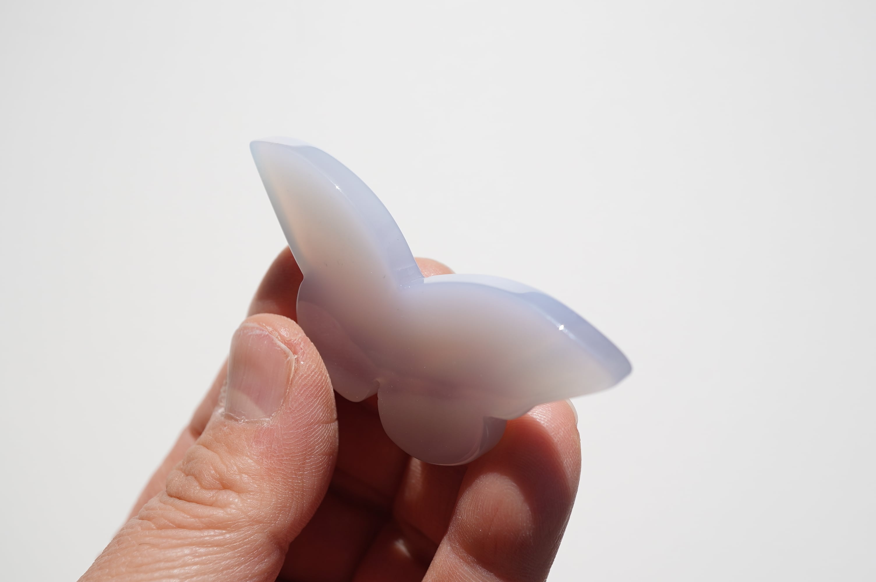 水色とラベンダーの中間色のような、でもブルーのような。はたまた淡いグレーのような。。見る人の感性をくすぐるブルーカルセドニーの色に心癒されます。