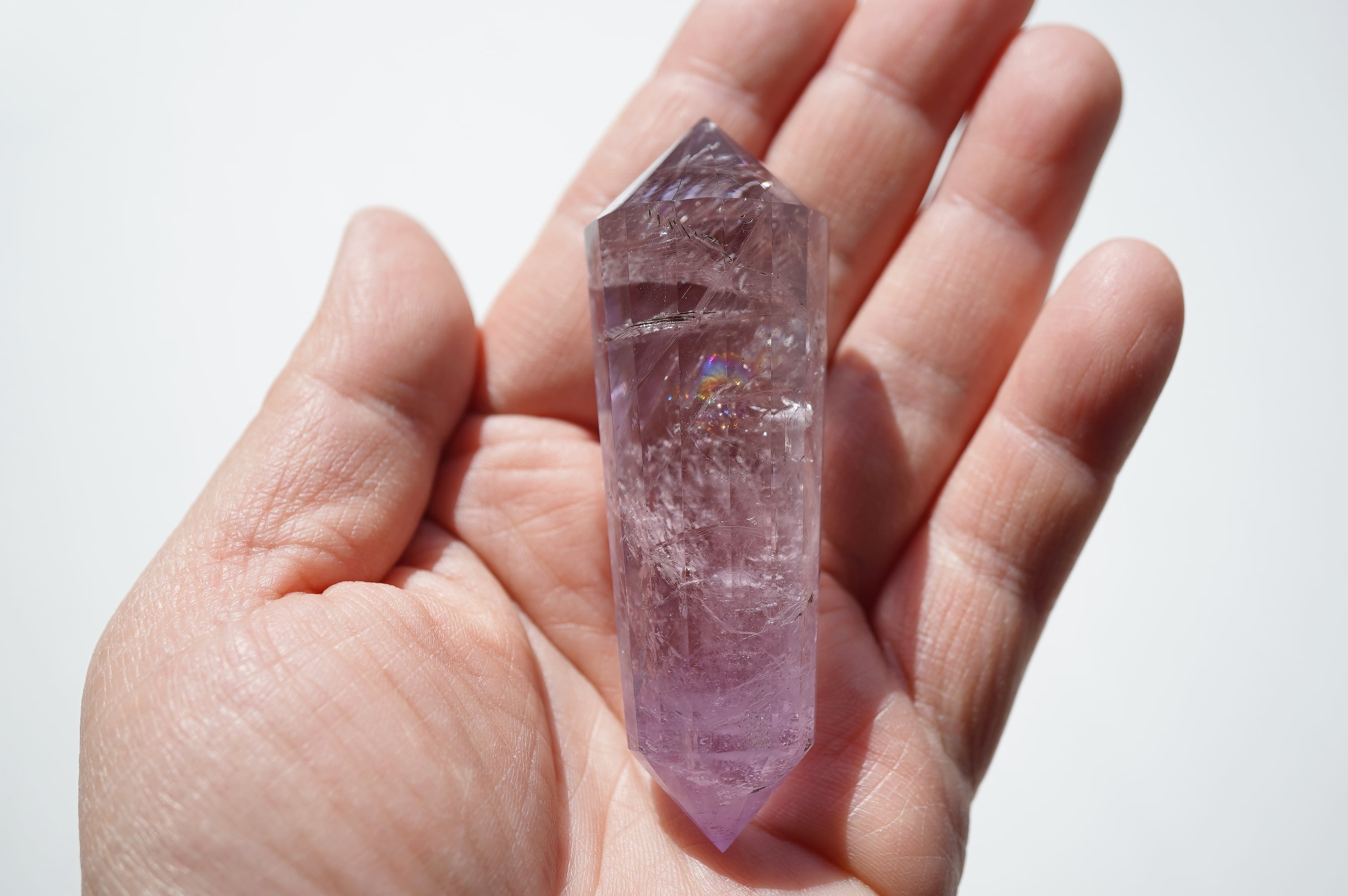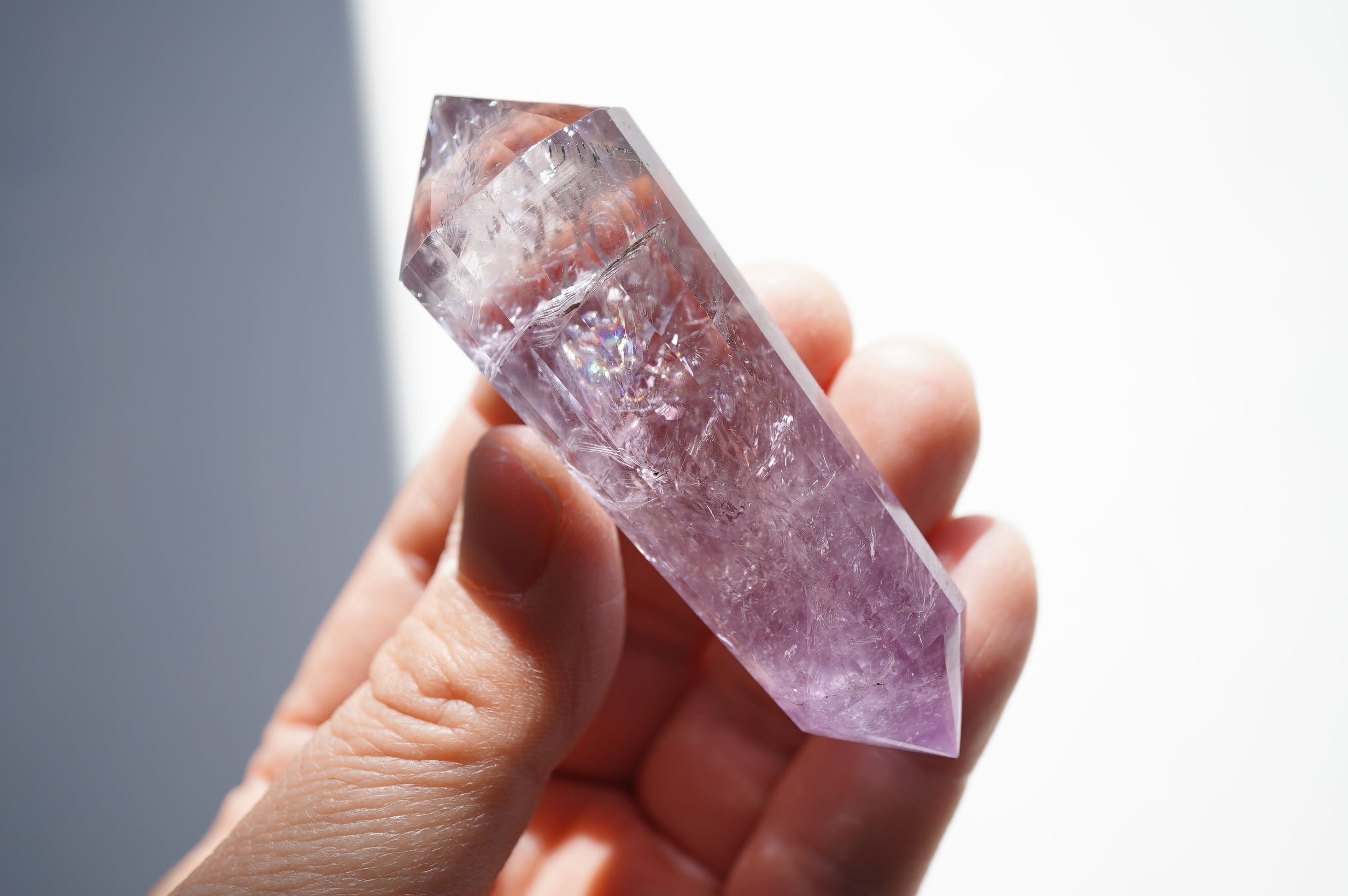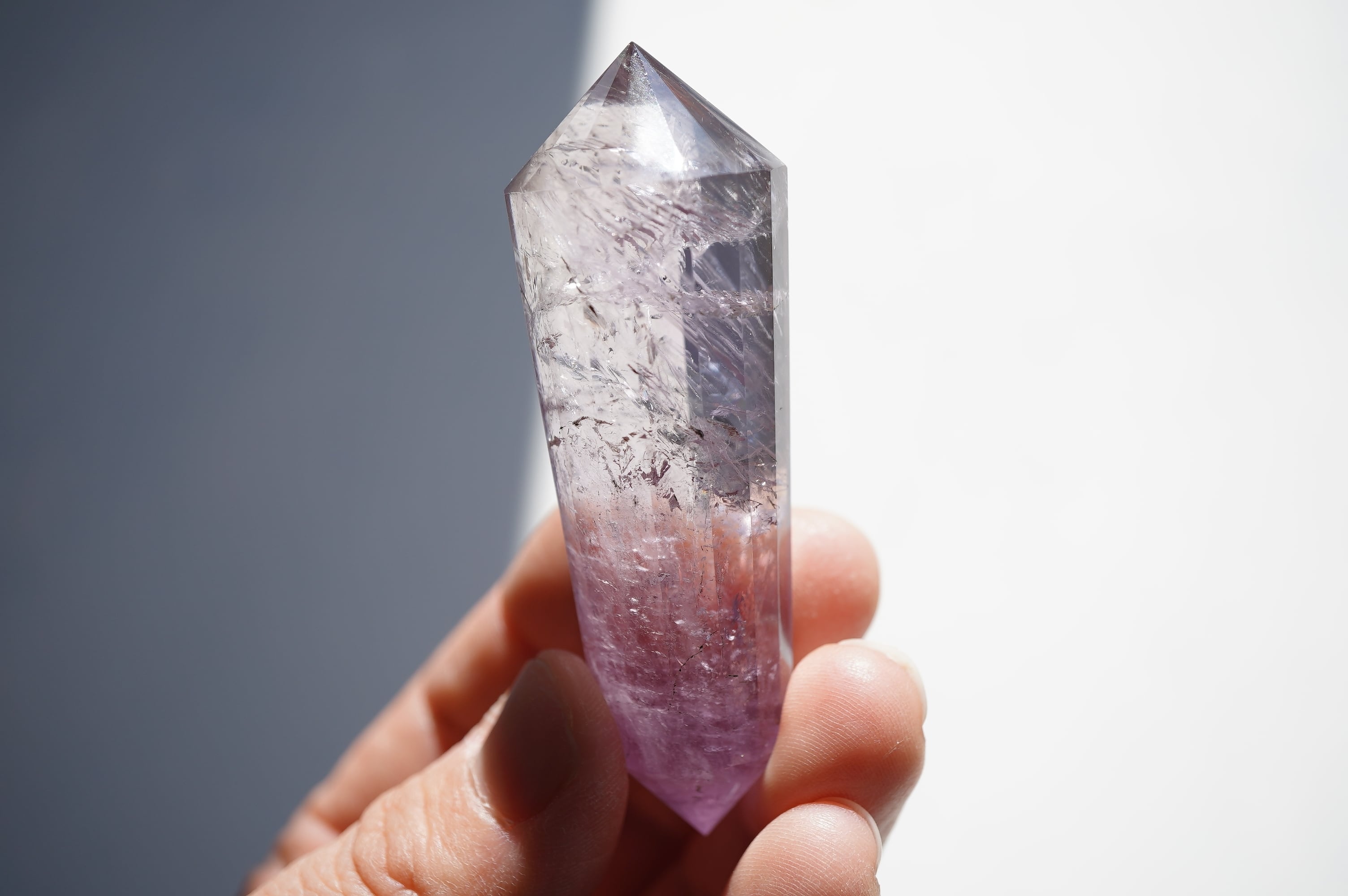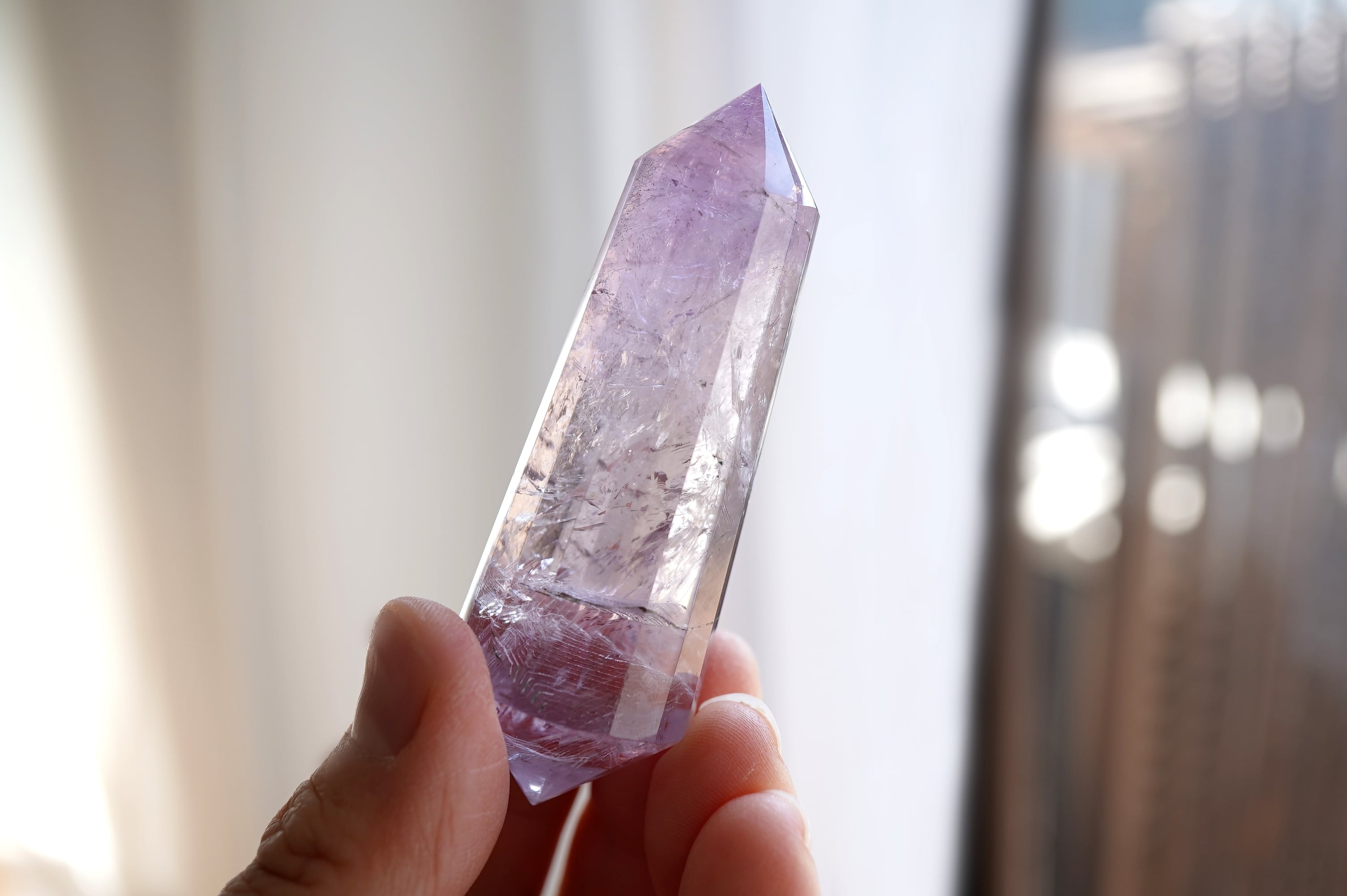 光の当たり方や強さなど、カットが入った石はその日その日で見える石の表情が違いますね。なのでいろんな状況で撮影を試みました。明るい屋内でお昼の光、午後の光、西向き、南向きなど。全体に色は濃くないですが、最初の3枚が実物に近い色かなと思います。手のひらに収まる大きさで馴染みやすいです。