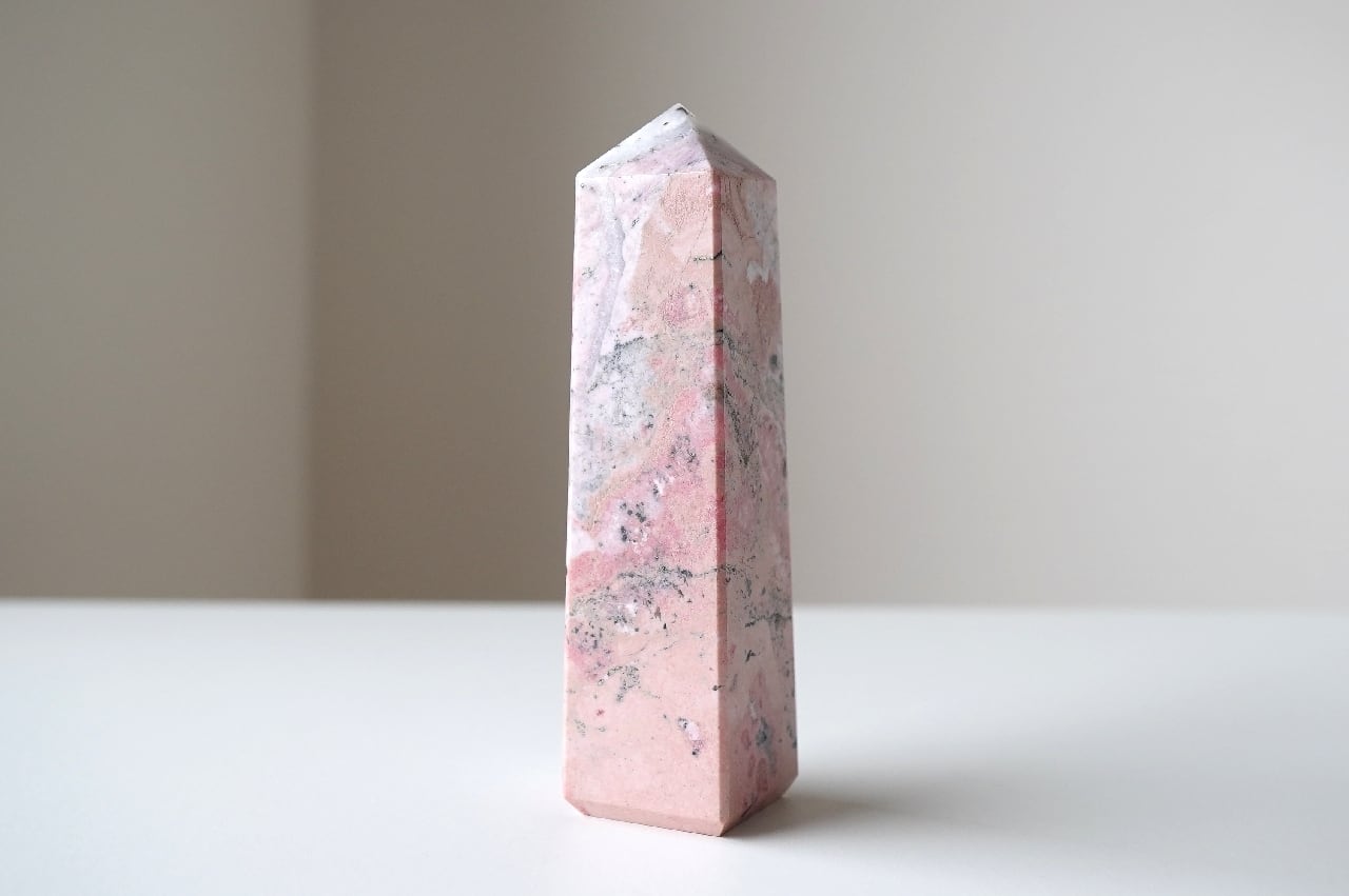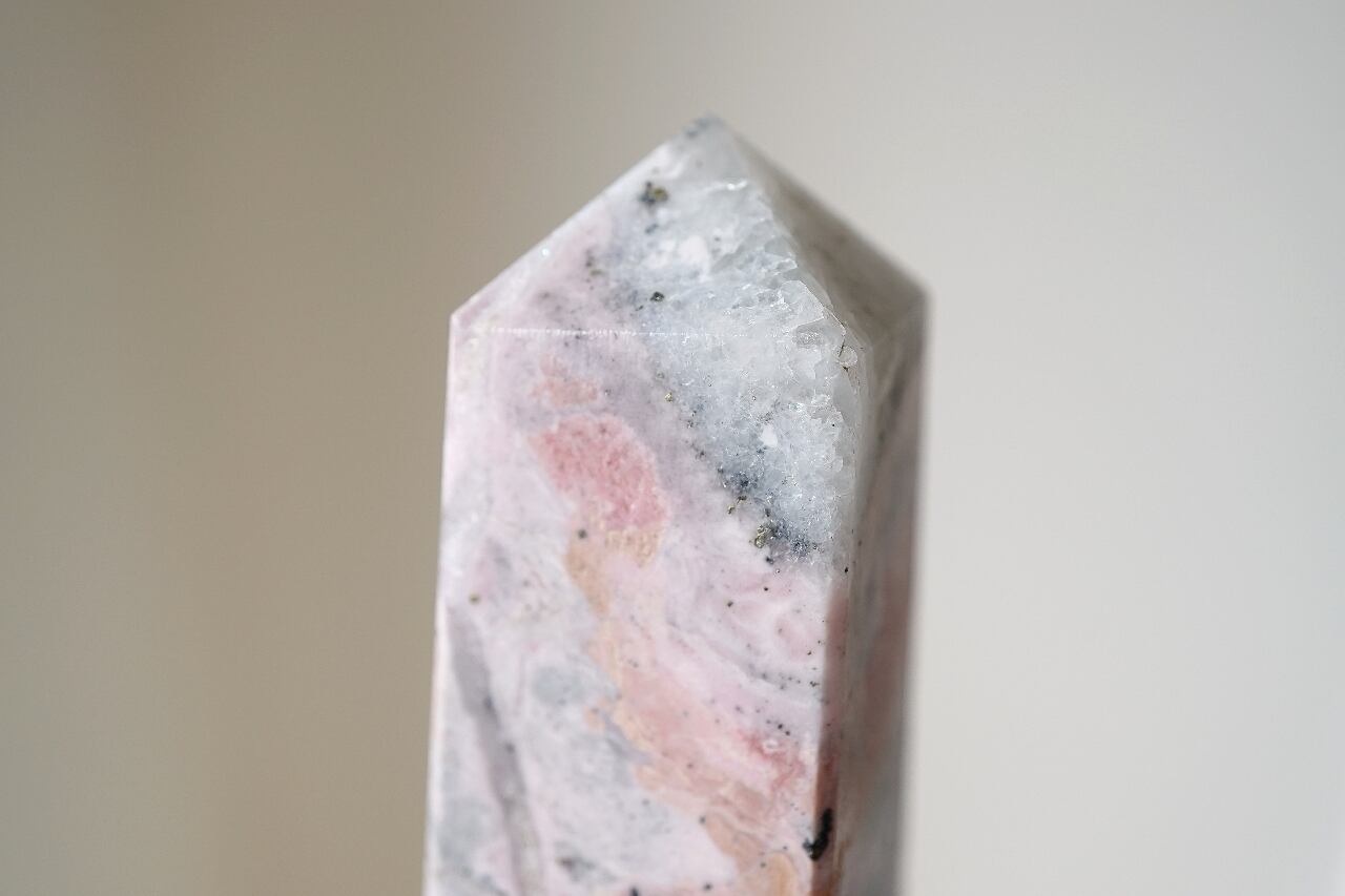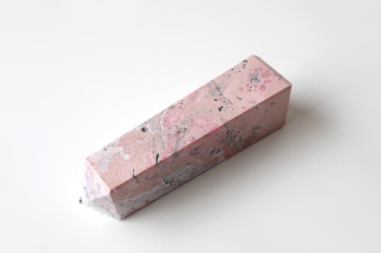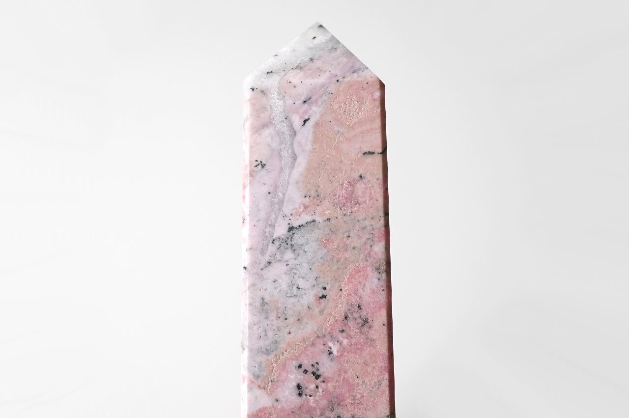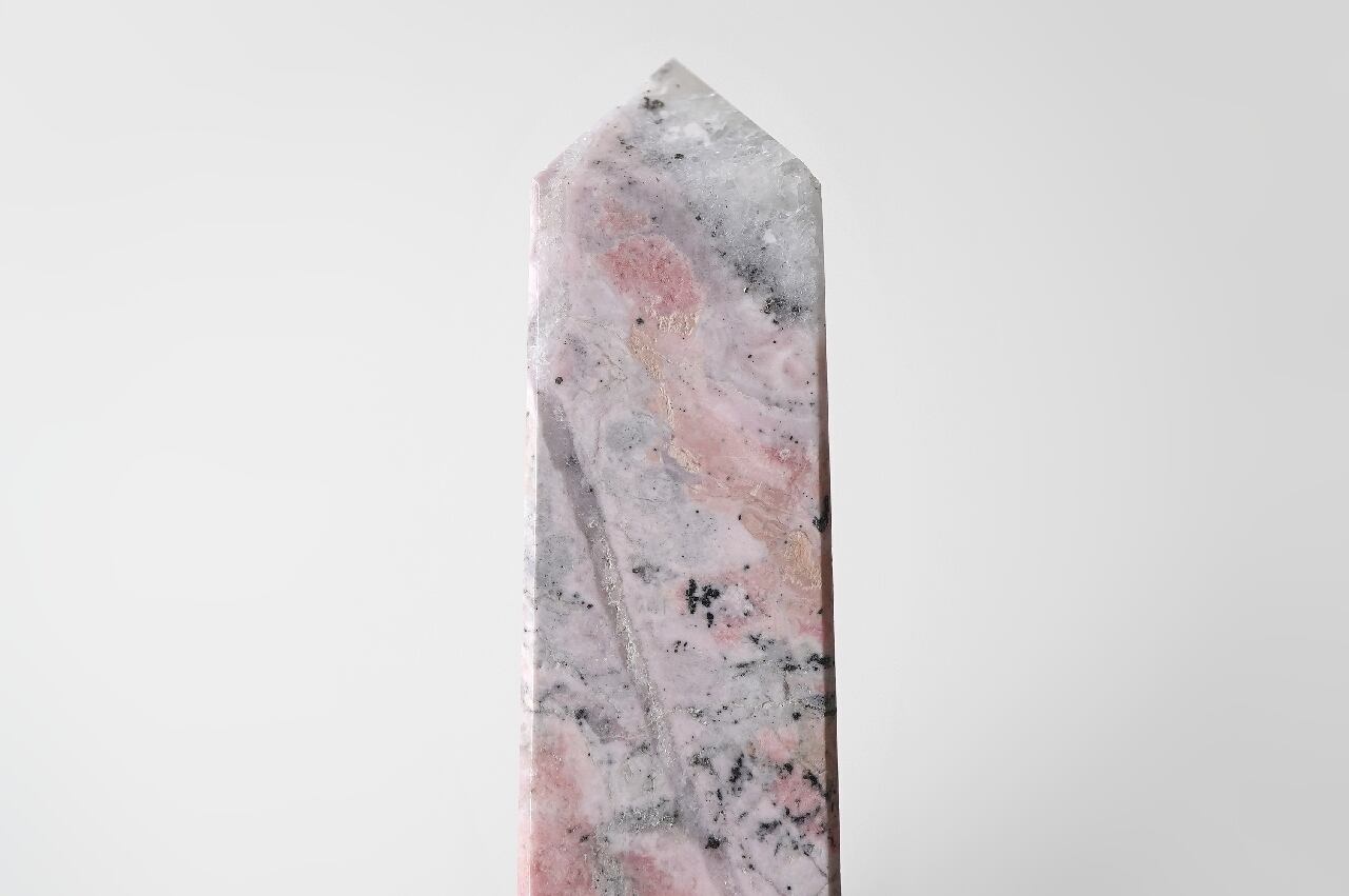 白いシリカ(水晶成分)が混ざることでミルキーなピンクになったロードナイト。なんとも言えないマーブルカラーが可愛いですね。