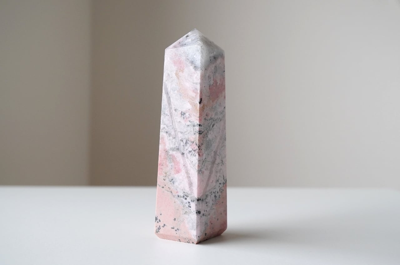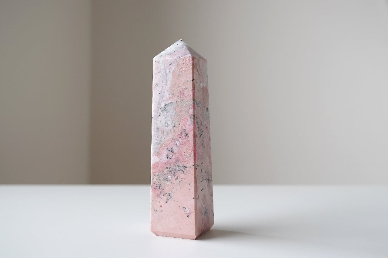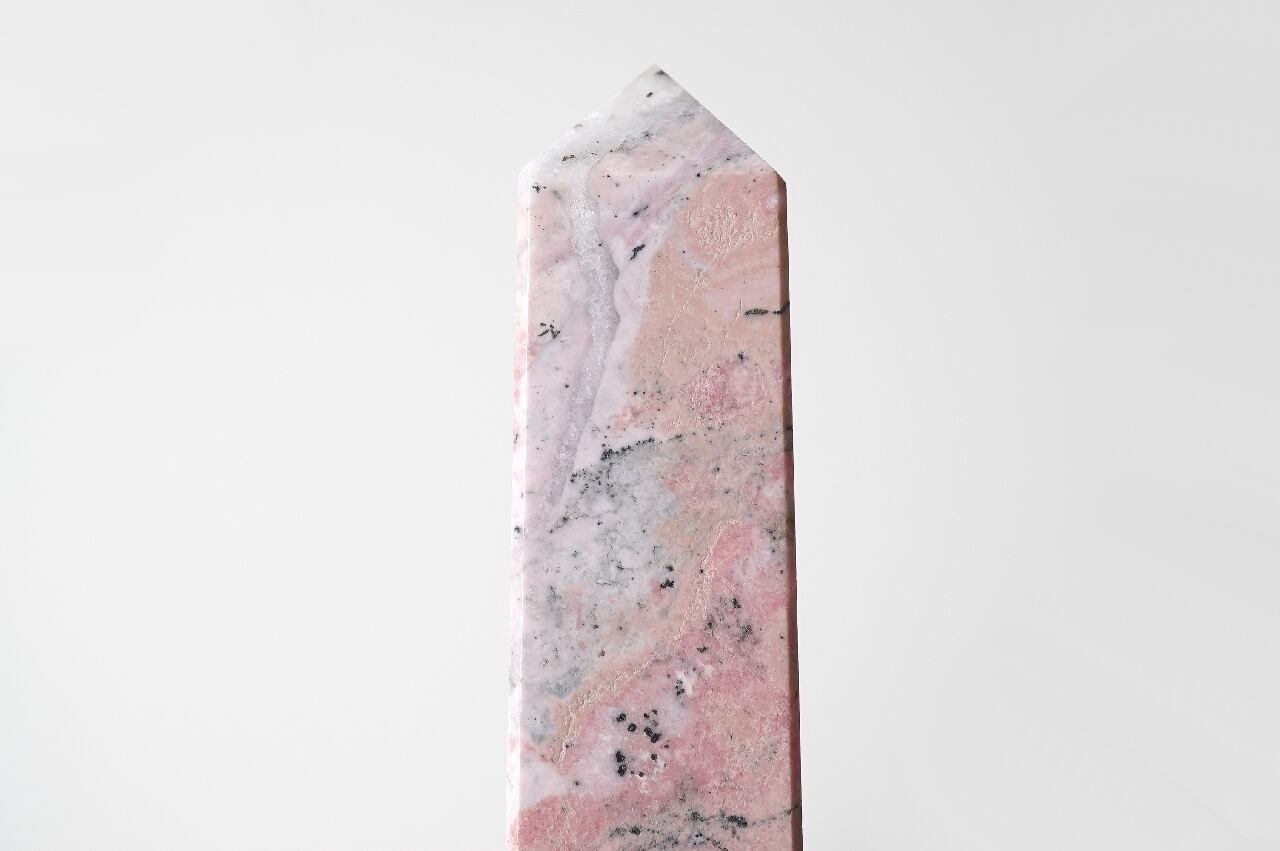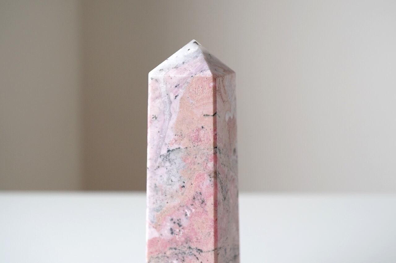 白いシリカ(水晶成分)が混ざることでミルキーなピンクになったロードナイト。なんとも言えないマーブルカラーが可愛いですね。