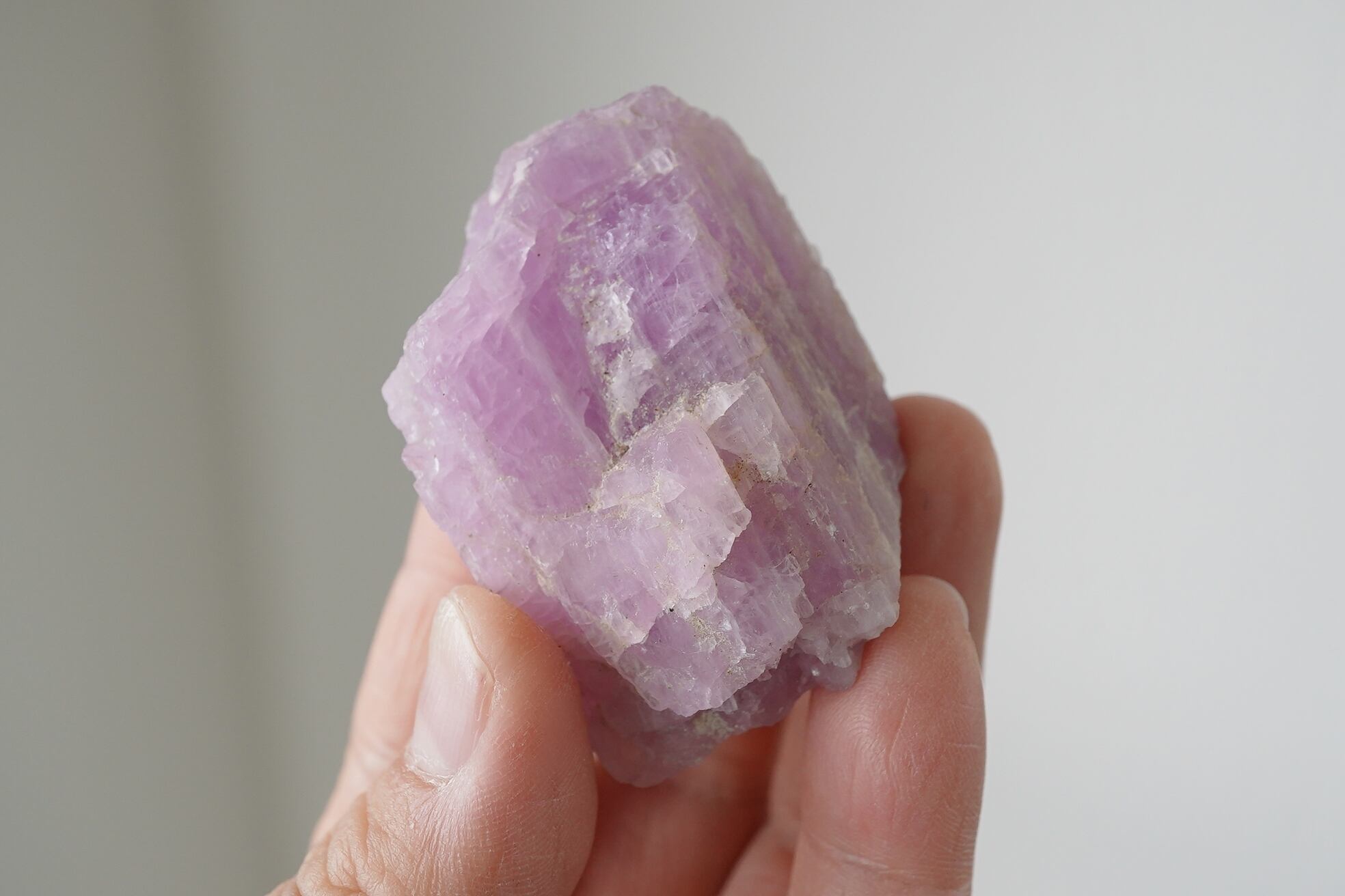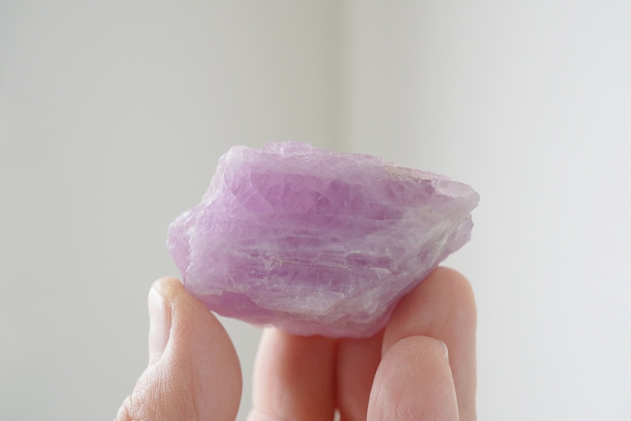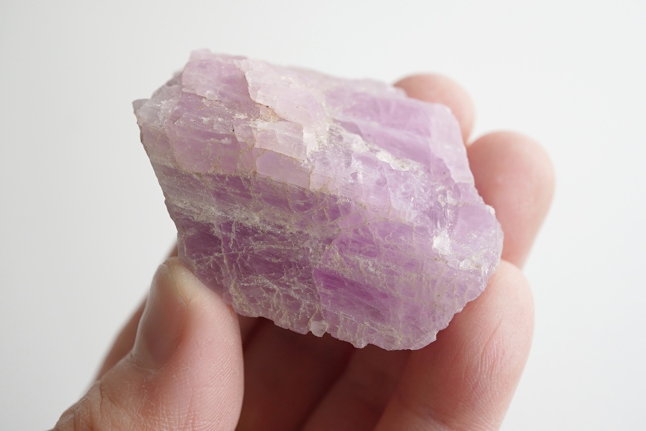 濃厚なパープルよりのピンクが印象的なクンツァイトの原石です。元気がでるような色です。