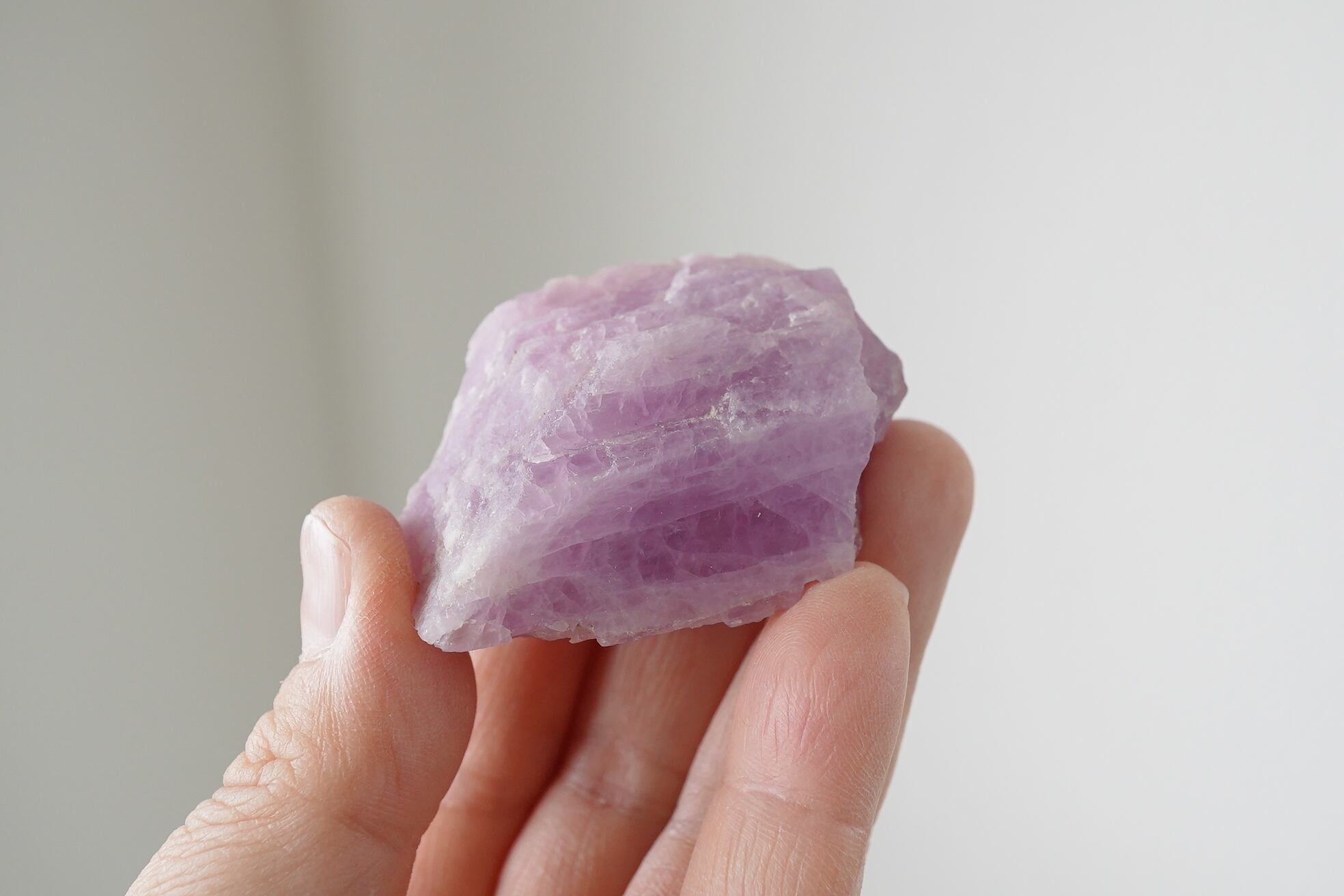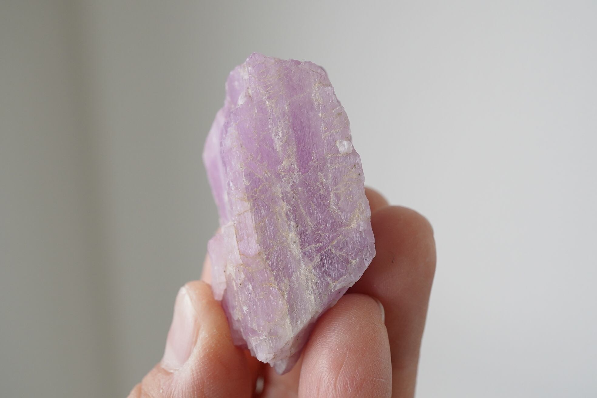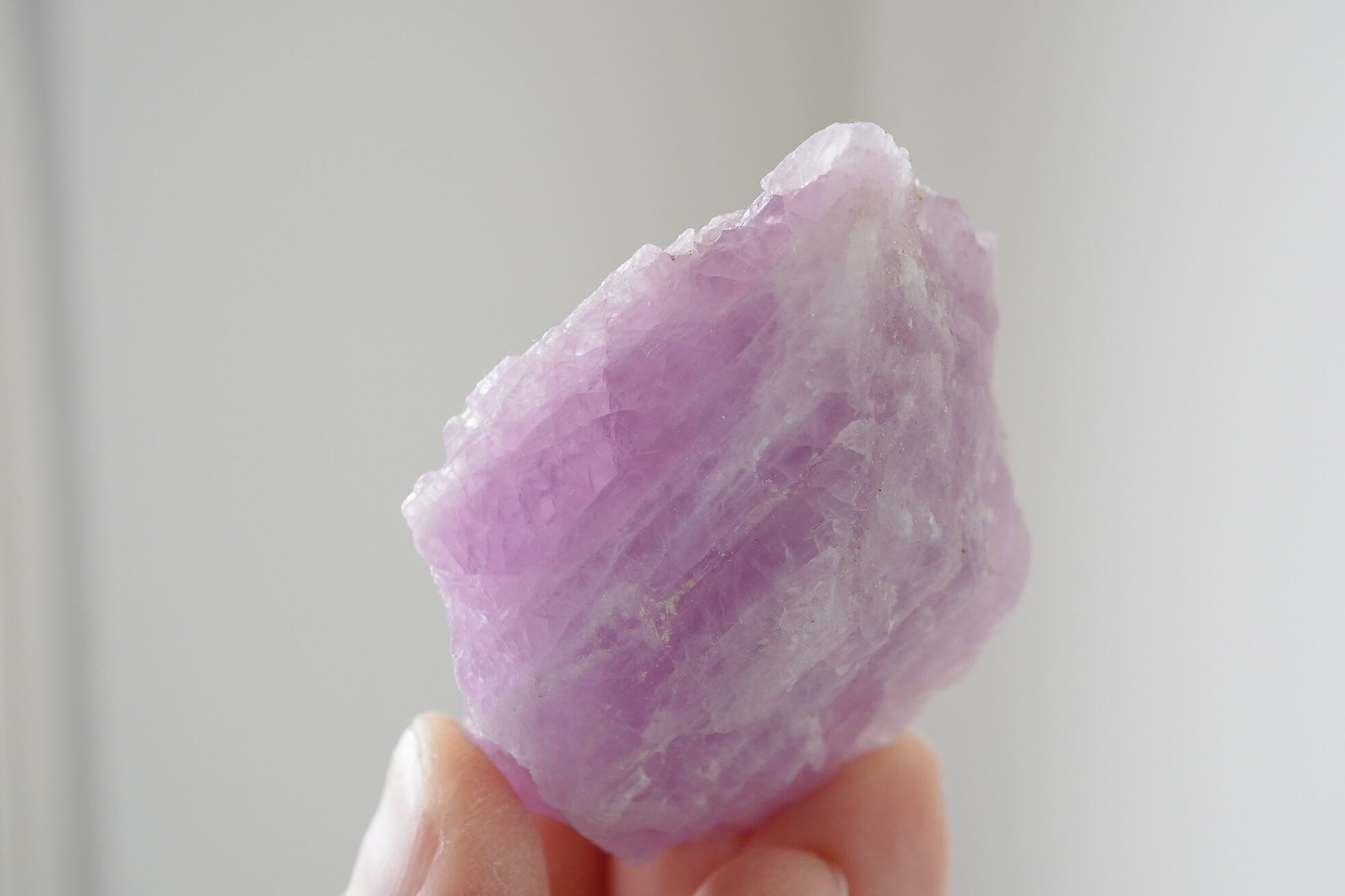 濃厚なパープルよりのピンクが印象的なクンツァイトの原石です。元気がでるような色です。
