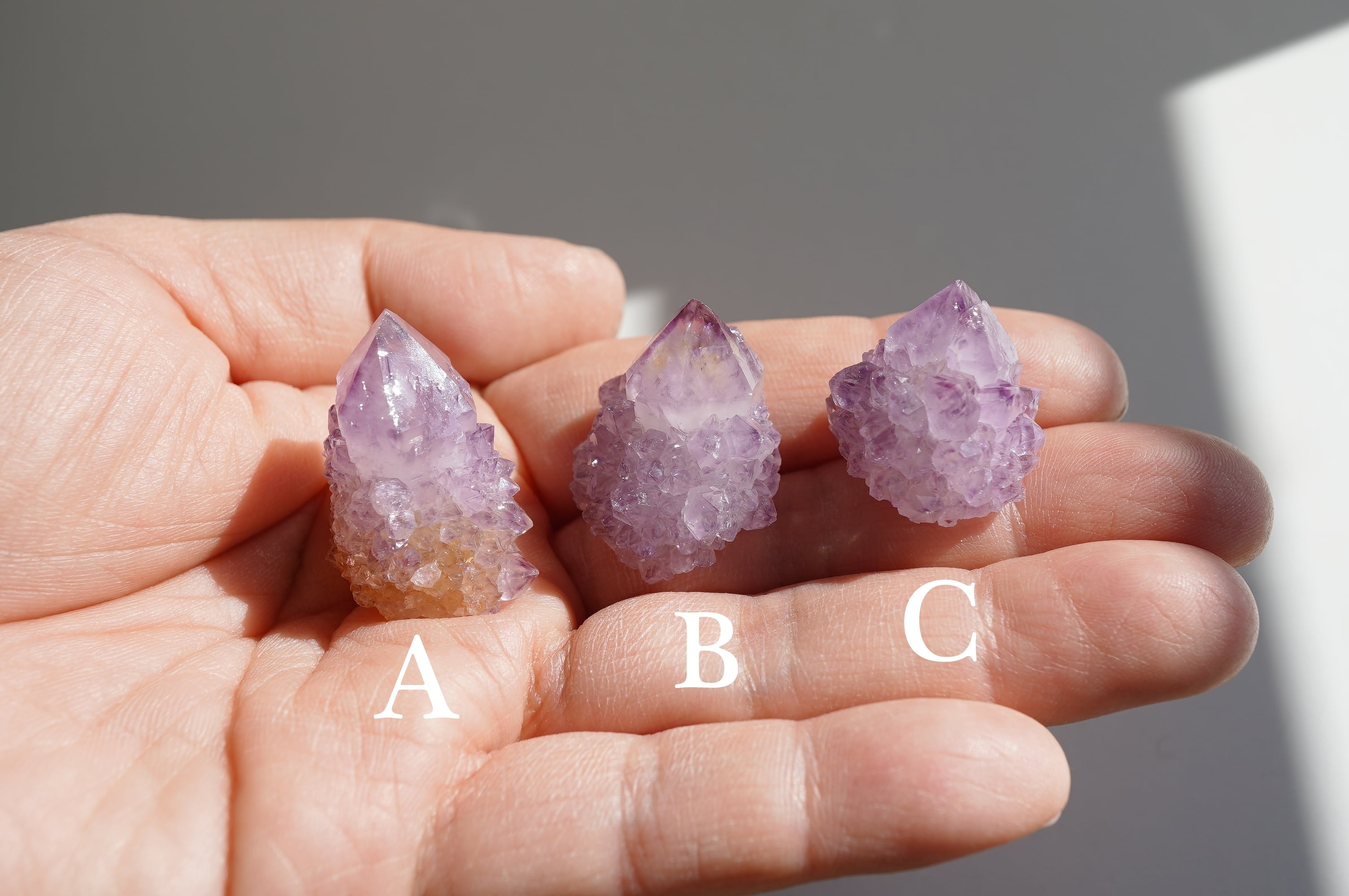 小さなカクタスアメジストたちのご紹介です。A・B・Cからお選びいただけます。
