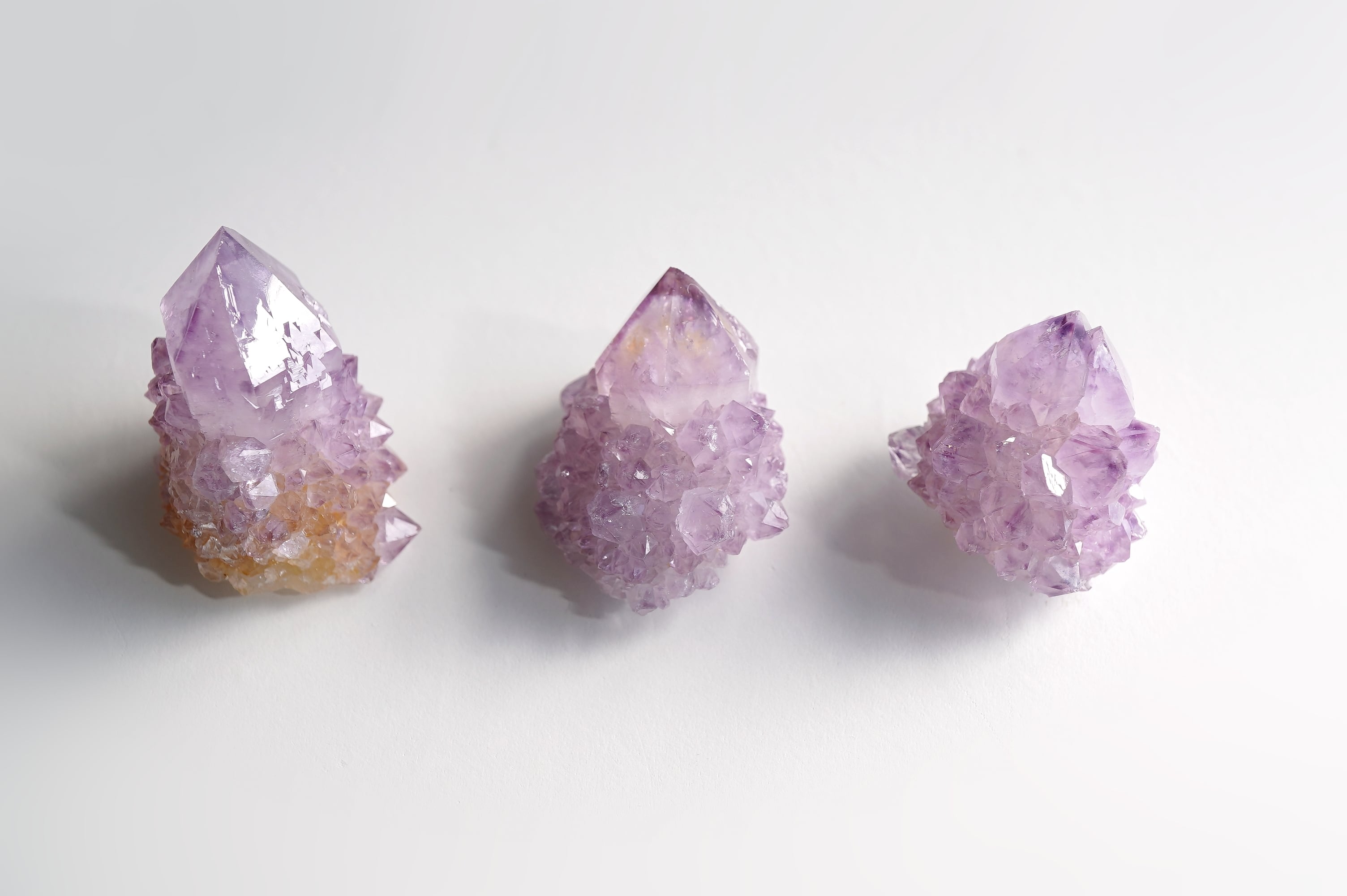 カクタスアメジストはアメジストの変種とされていますが、このサボテンのような風貌からカクタス(Cactus)クォーツと呼ばれています。3つとも色ツヤがよくとても可愛いです⭐︎