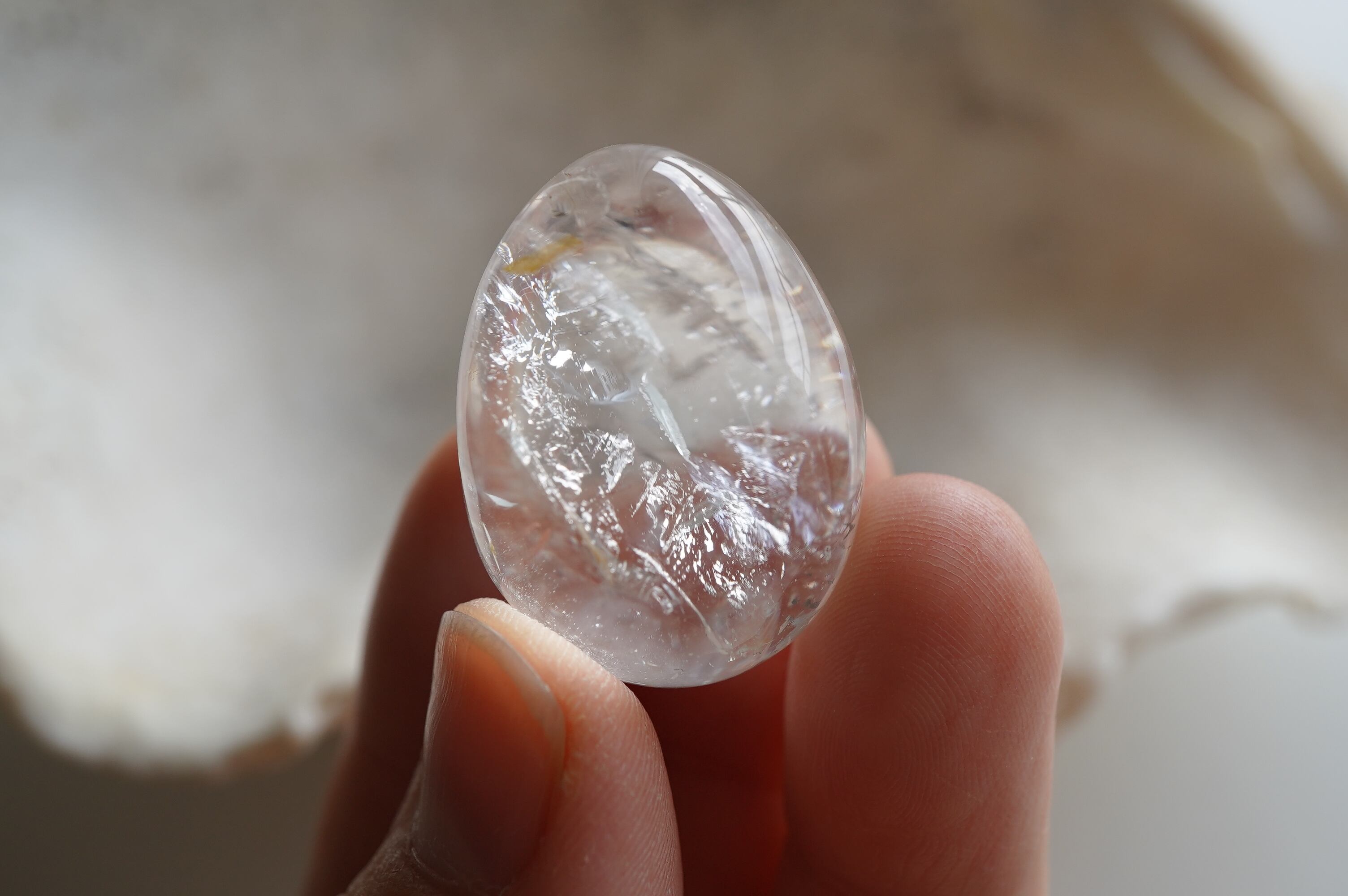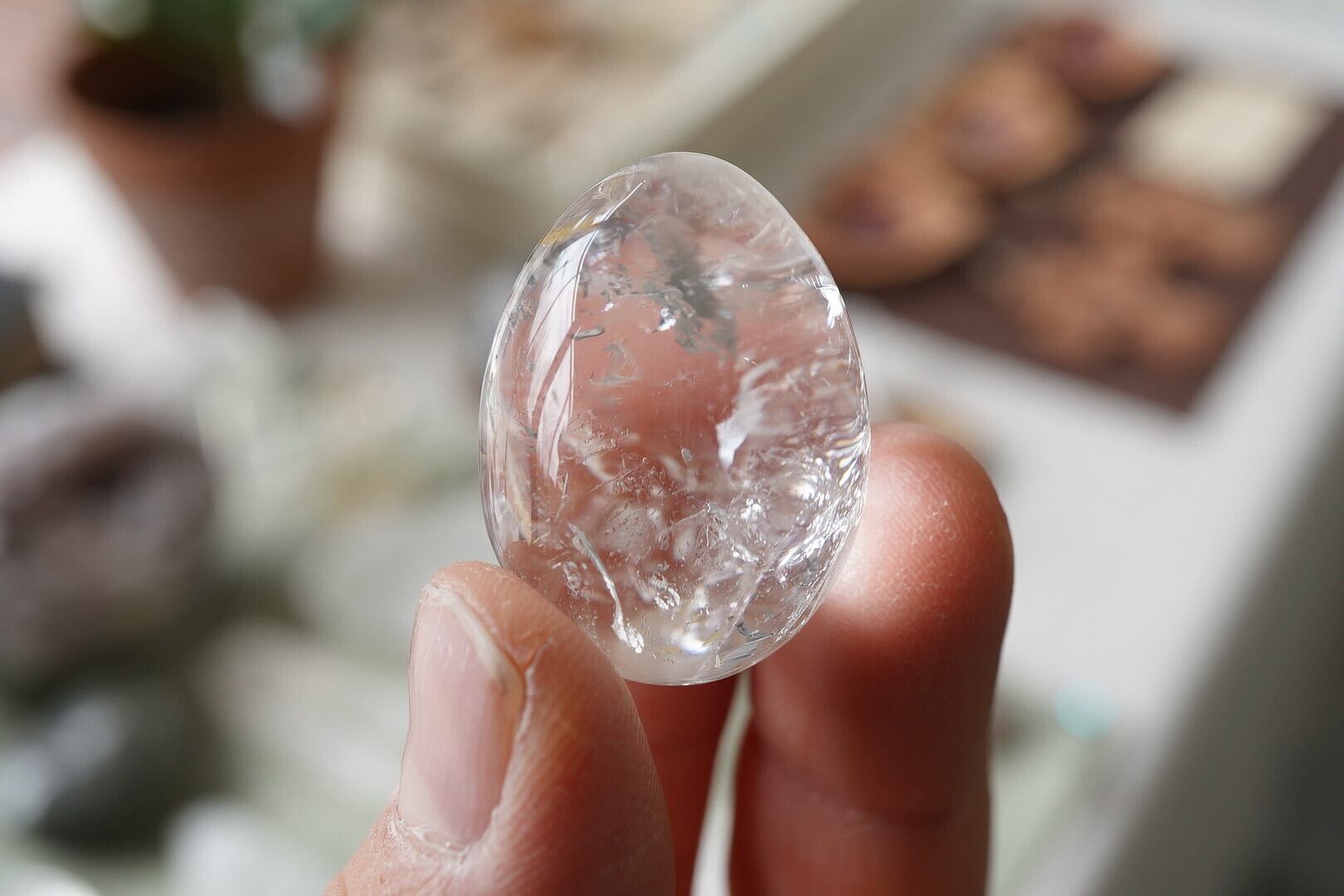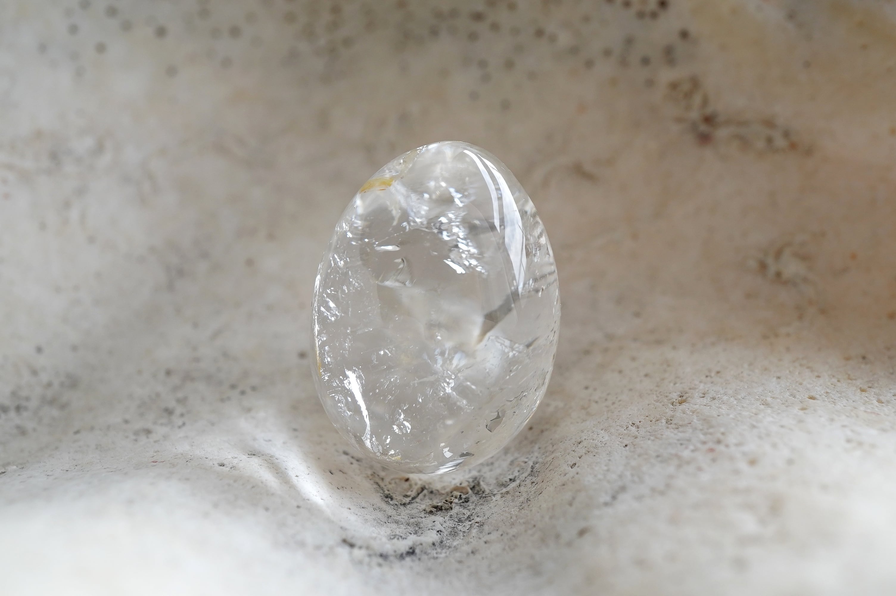 つるつるに磨かれてぷるんぷるんの水晶エッグです。中にできた自然なクラックもダイナミックで素敵です。