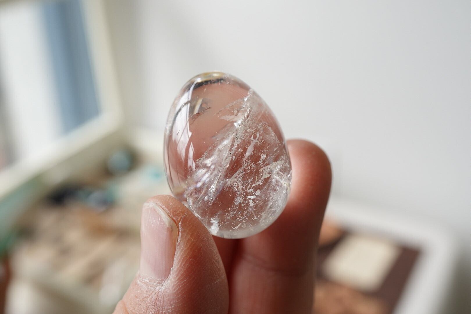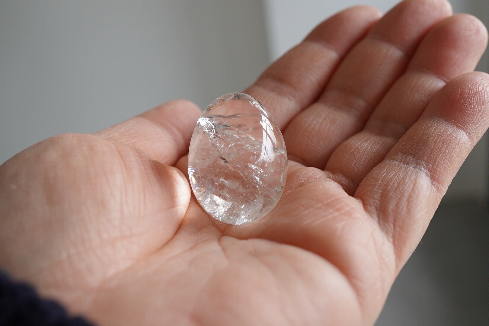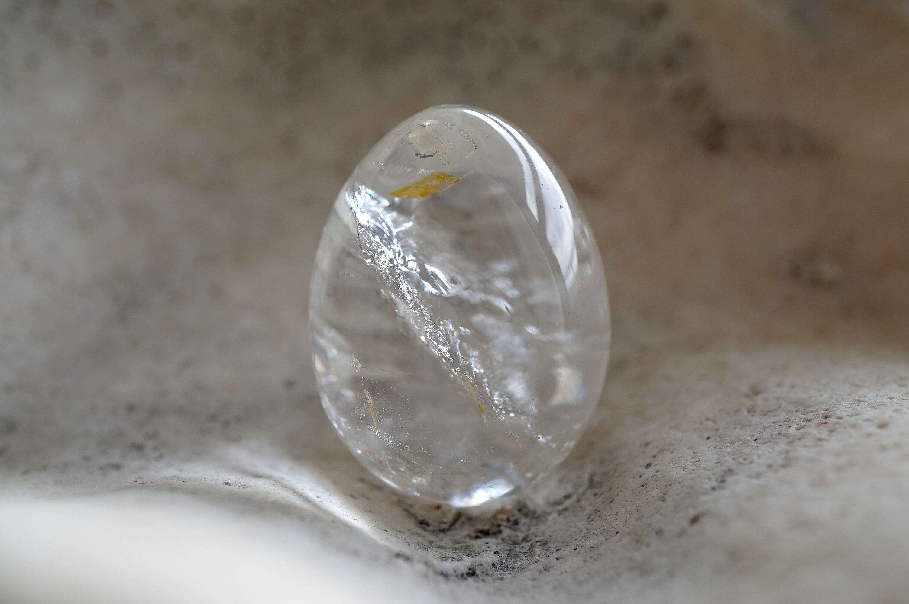 つるつるに磨かれてぷるんぷるんの水晶エッグです。中にできた自然なクラックもダイナミックで素敵です。