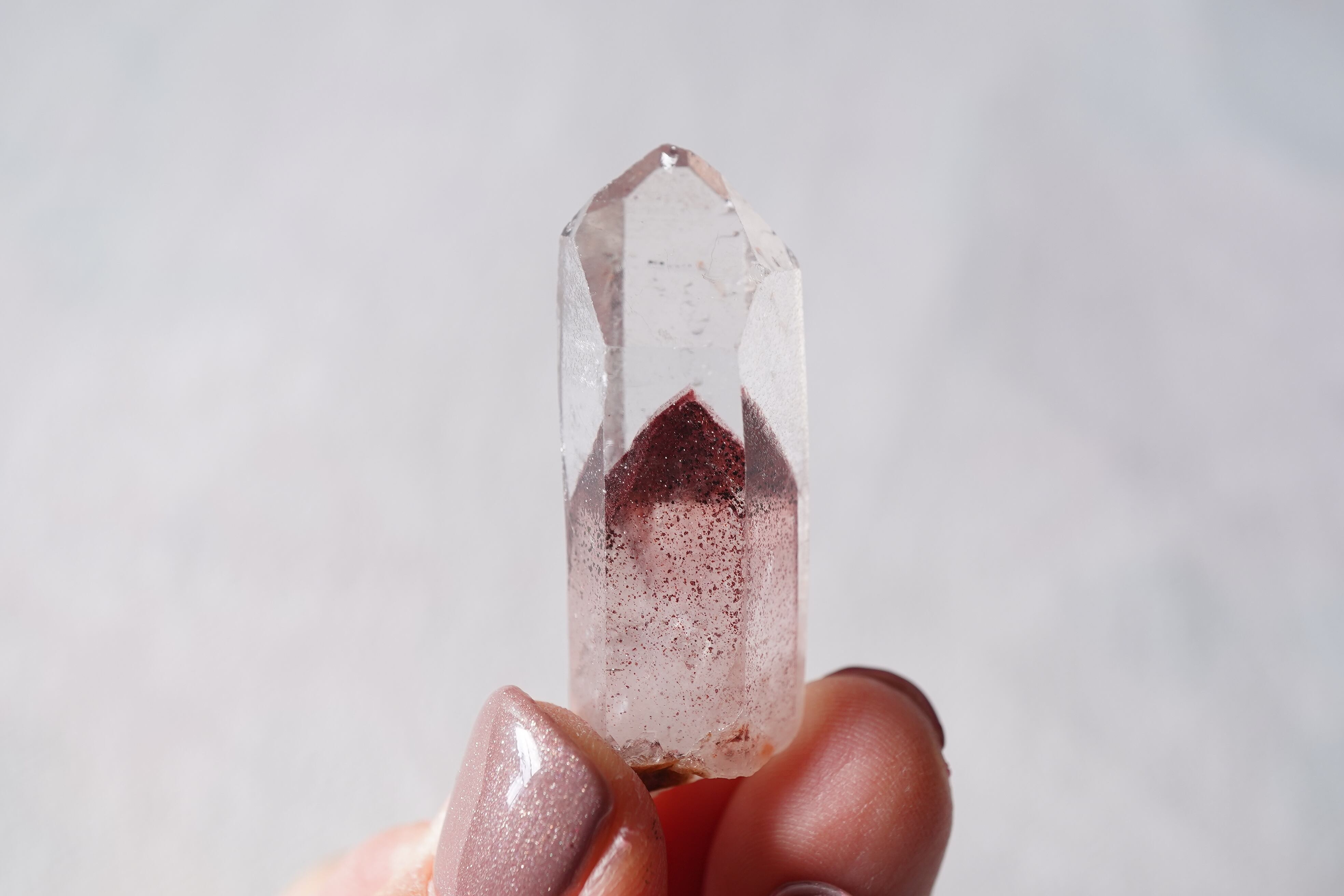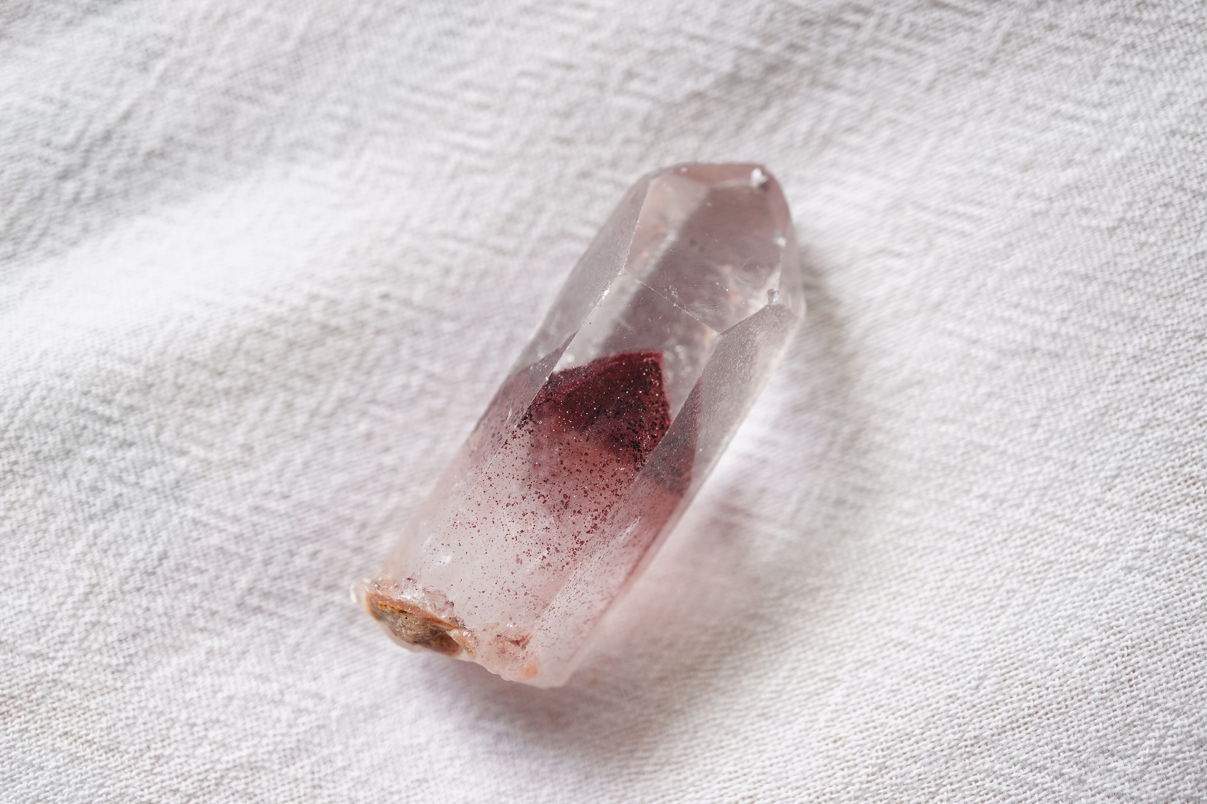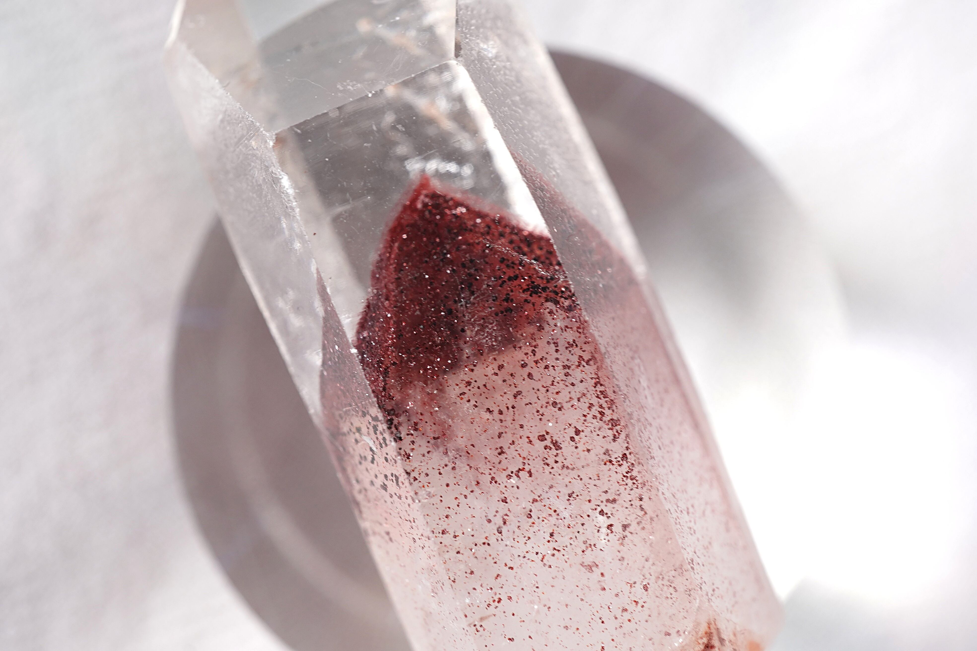ファントムとは水晶内で過去に成長した跡が山のように見える現象のことです。その山を形成している内包鉱物によって色が異なり、レッドファントムの場合、鉄分( ヘマタイト)によるものです。また別名「赤富士」と呼ばれ縁起の良い意味も持ち合わせています。
