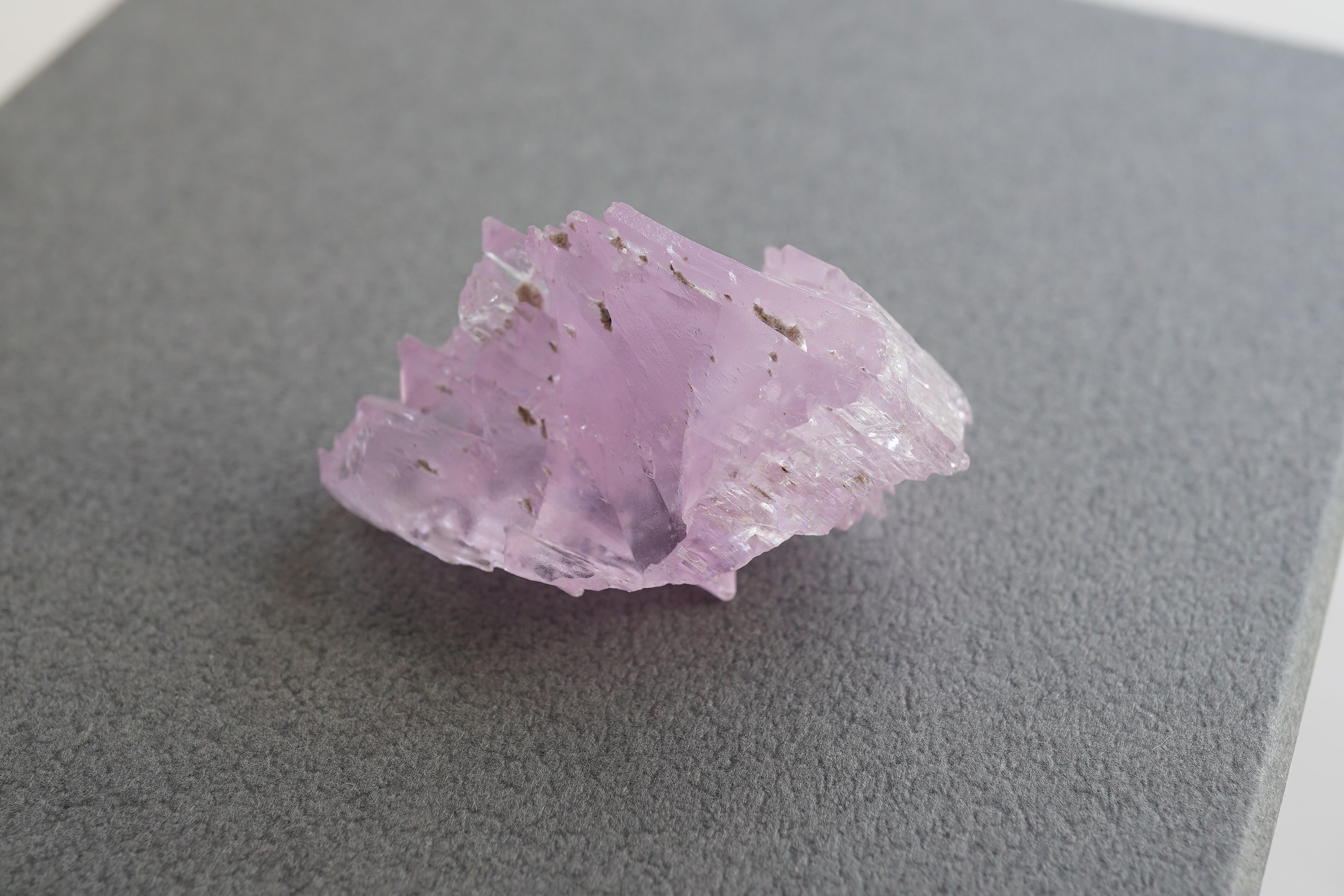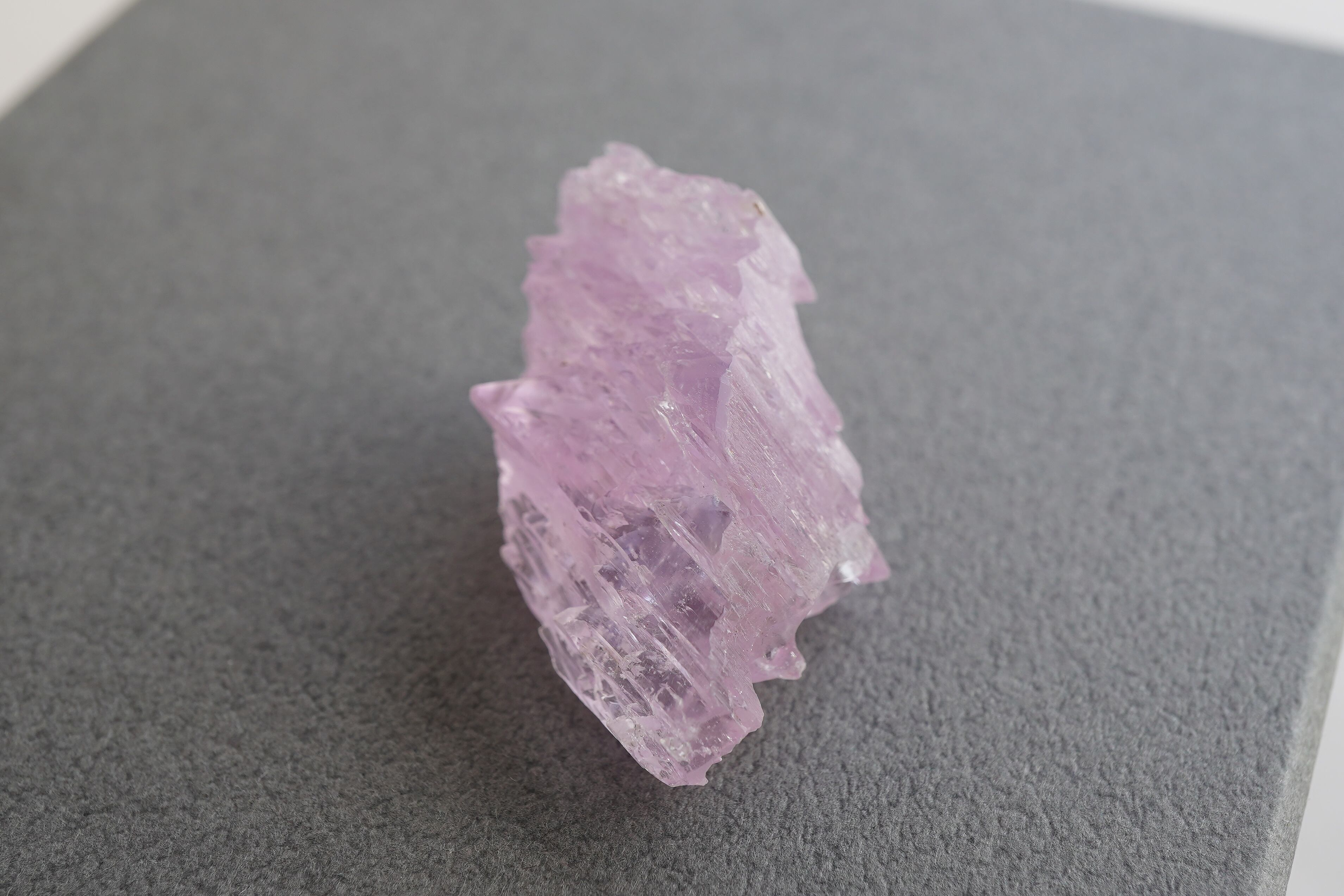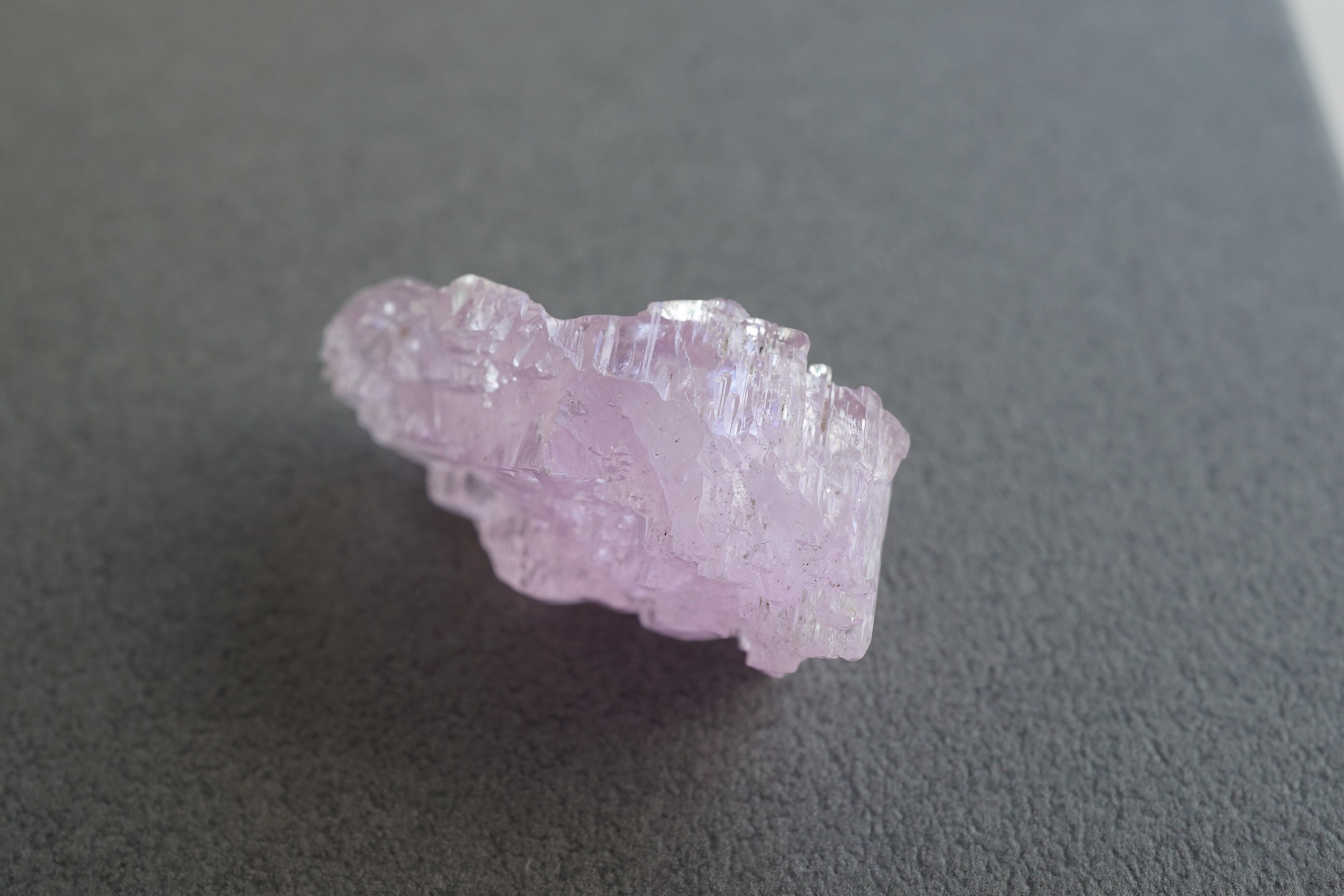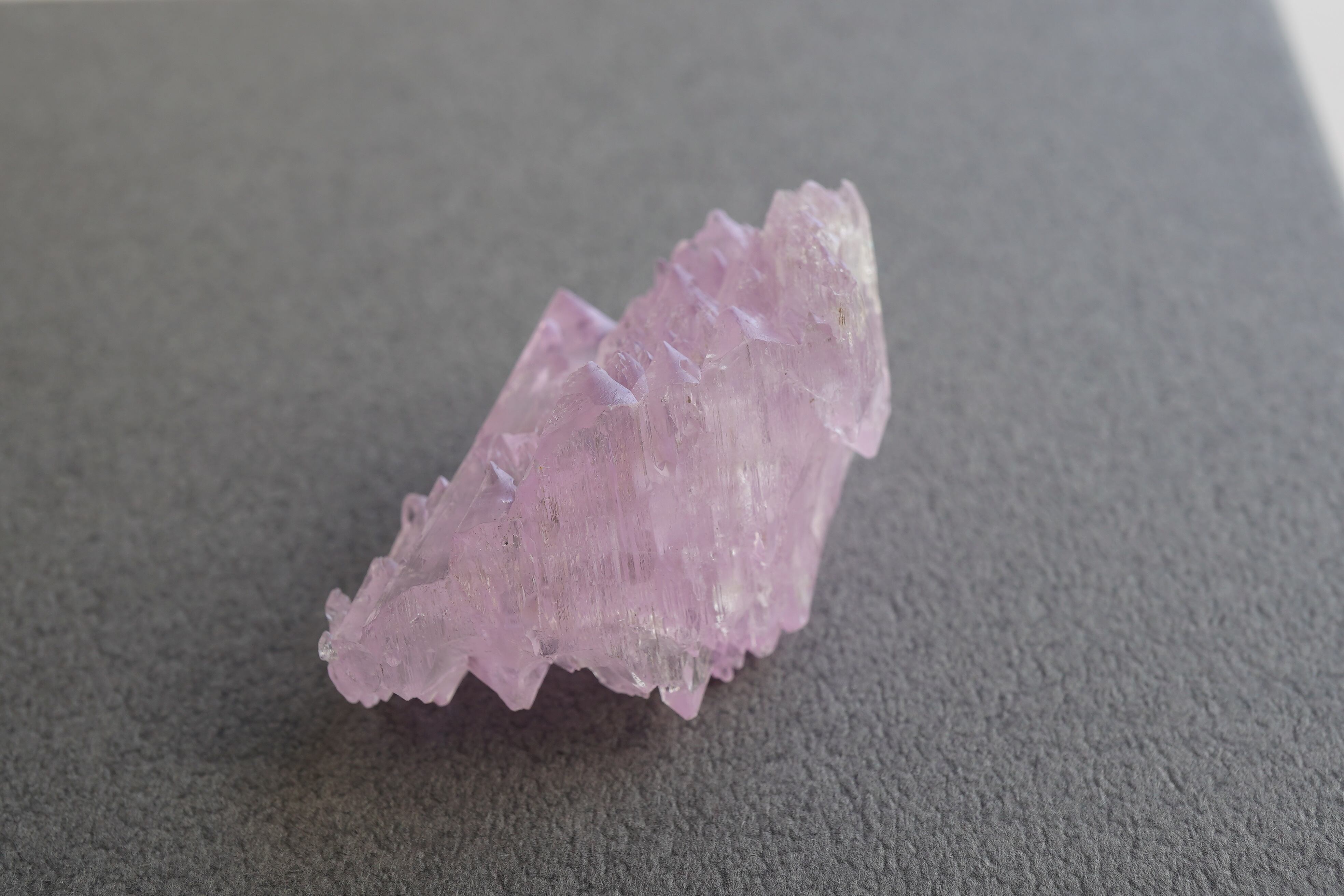 とても珍しい蝕像クンツァイト。地殻変動や圧力・地熱など様々な要因で結晶が溶けて固まってを繰り返したものを蝕像と呼びます。通常の結晶よりも独特の風貌をしていて、山が連なっているかのようです。