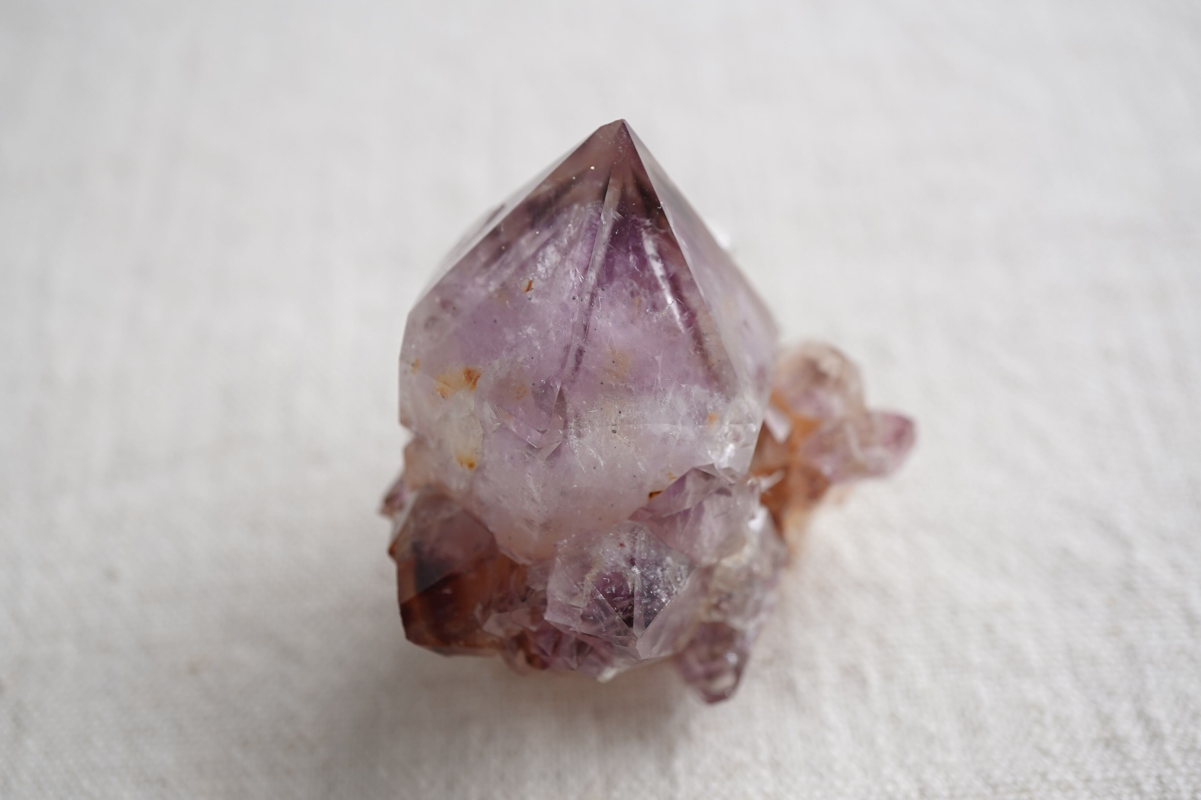 元々スピリットクォーツと呼ばれていたものは濃厚なパープルが特徴で、後にその産出量が激減し今日に至っています。そんな中、近年産出されたものは色のバラエティーに富んでおりツヤ照りもみられてとても美しいです。