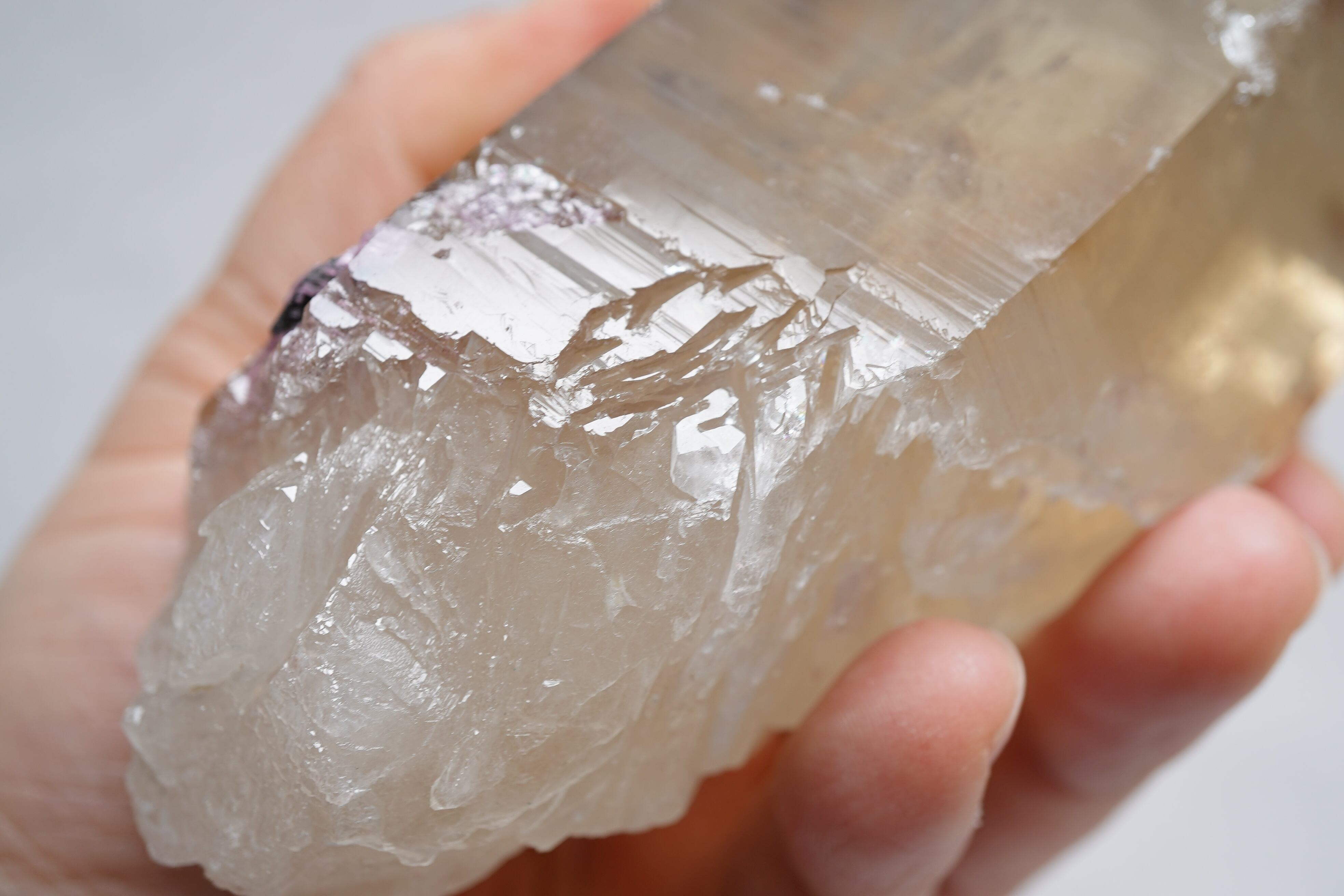 質の良い天然シトリンが年々減ってきているブラジルでは希少となってきました。とくに結晶を美しいままに残した大きなシトリンは本当に稀となりました。こちらは透明度が高く結晶の存在感が素晴らしいです。ちょこっとレピドライトとほんのりグリーンのトルマリンがくっついています。