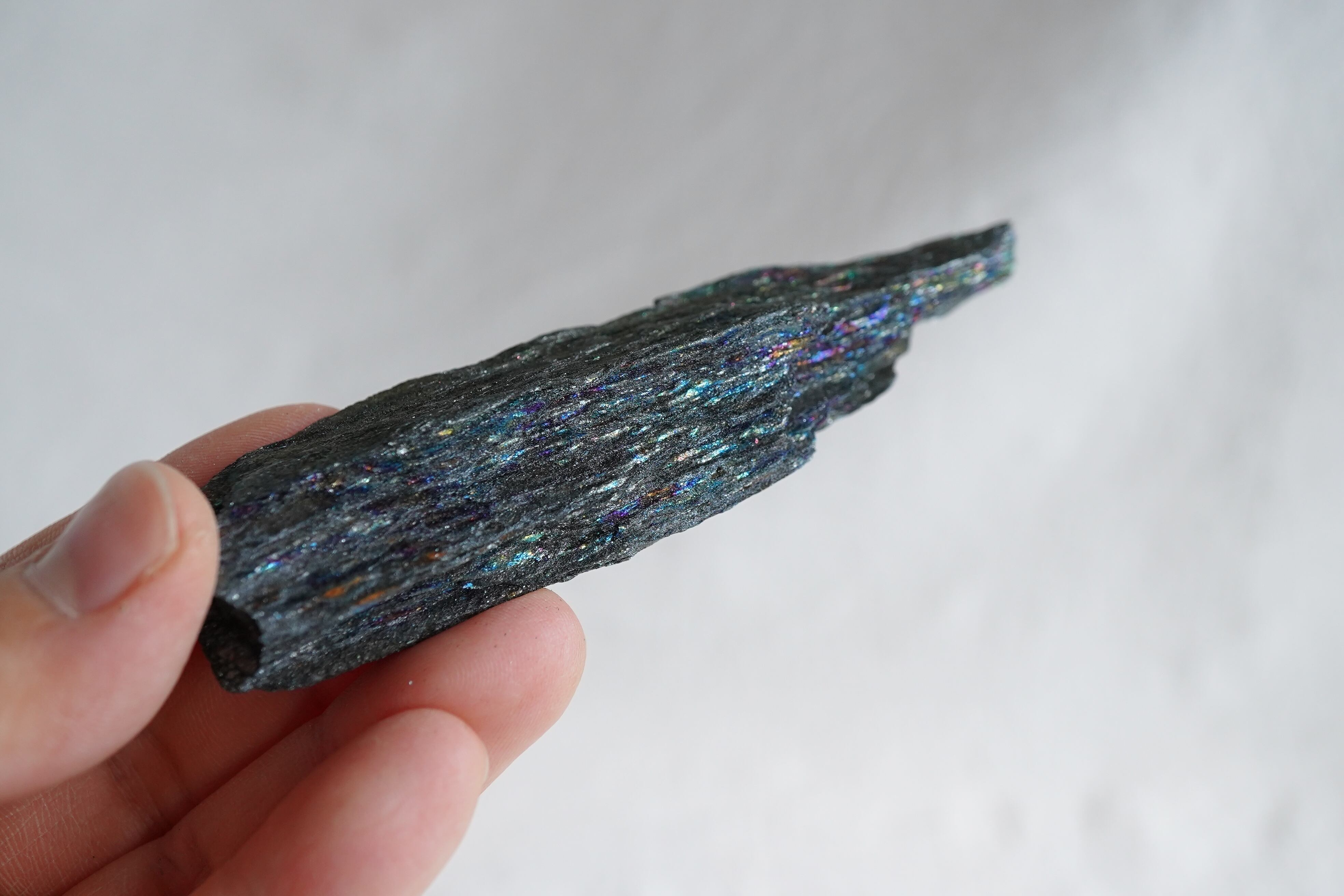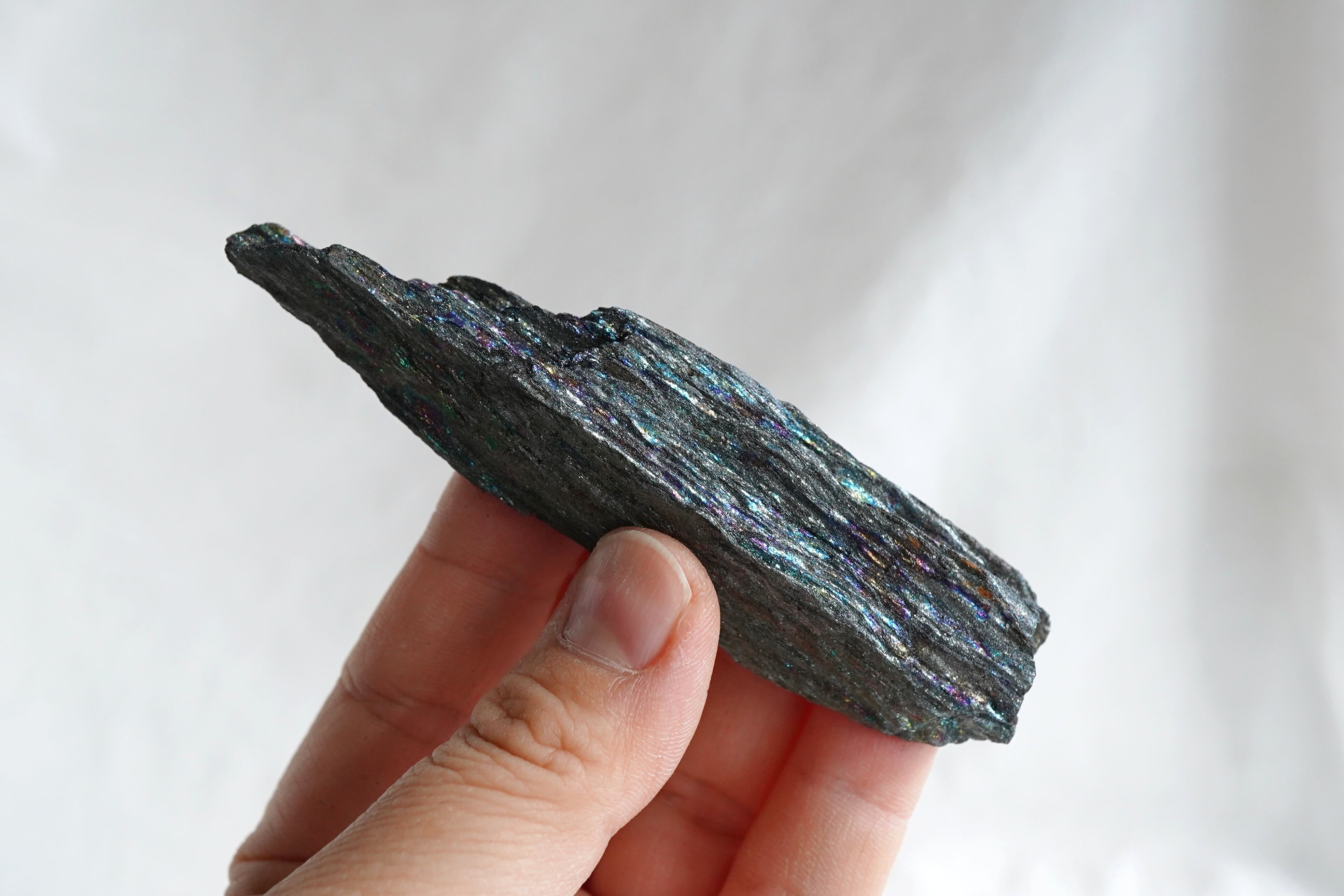 ヘマタイトは洞窟壁画の顔料や道具や武器の原材料として、さまざまな目的で何千年もの間、人間によって使用されてきました。表面の虹色は自然界にて極微細な燐酸塩鉱物が付着することによって生じています。ヘマタイト自体が酸化鉱物ですが、虹色に輝くヘマタイトはとても希少です。とても繊細な石ですのでお取り扱いにはご注意ください。